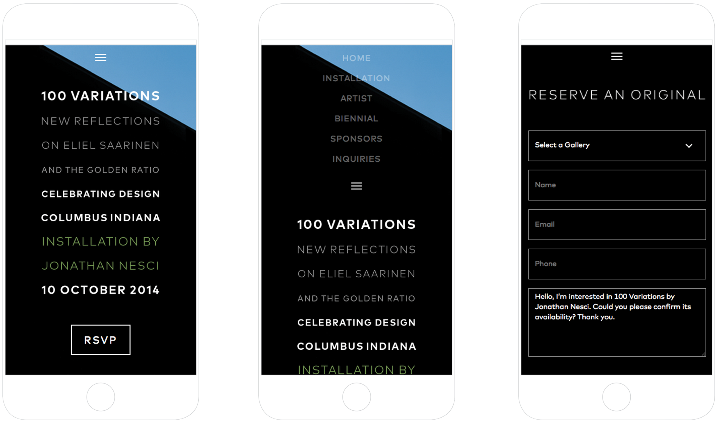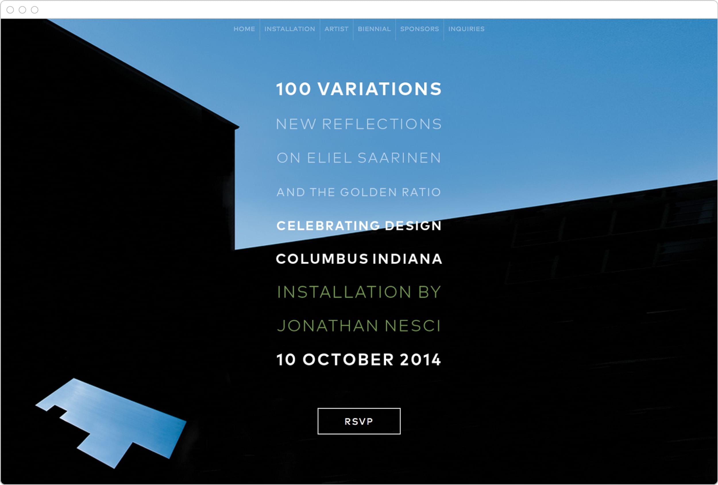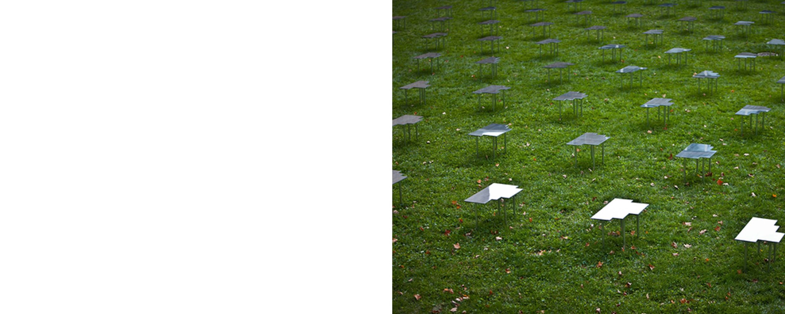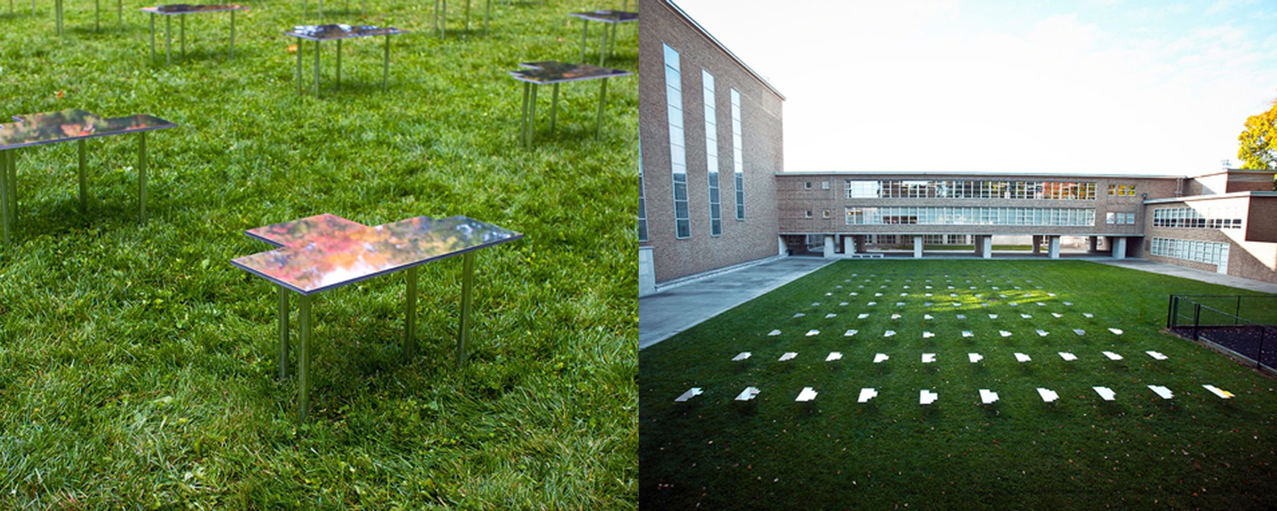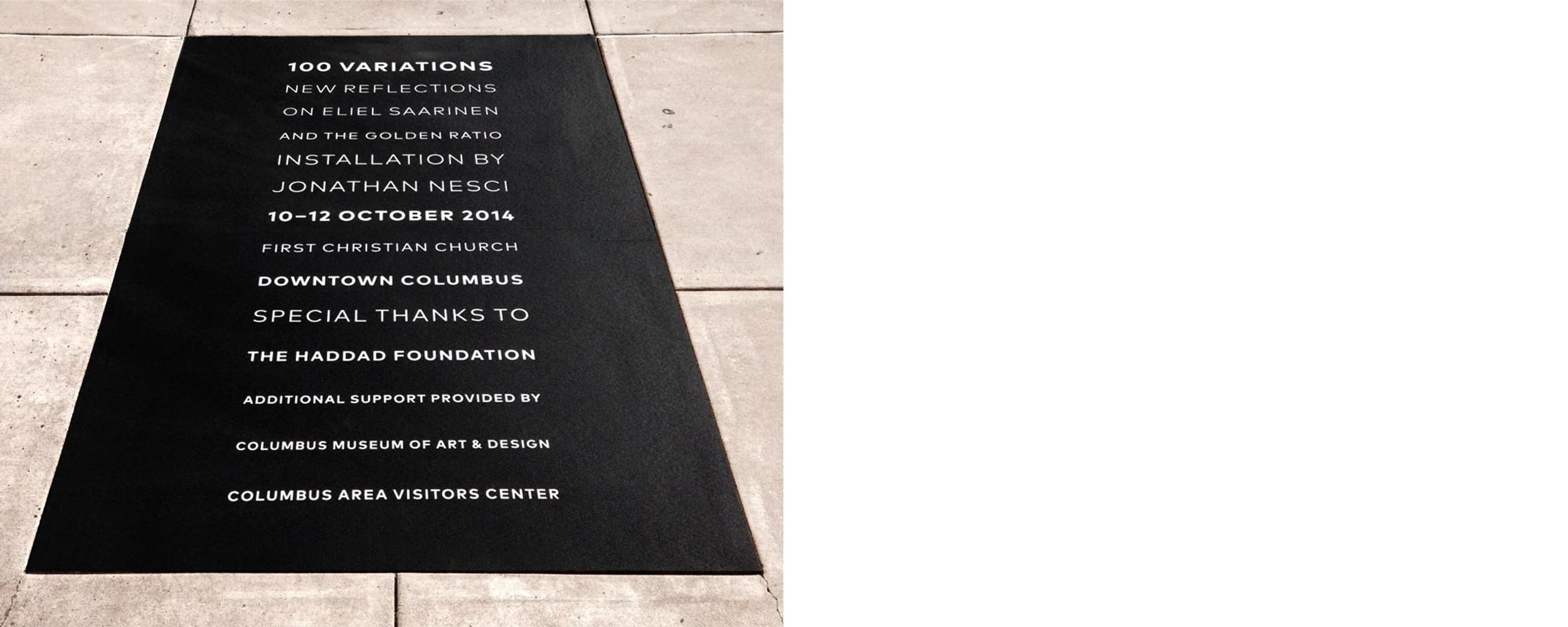 Thirst worked with artist Jonathan Nesci to foster and promote 100 Variations: New Reflections on Eliel Saarinen and the Golden Ratio. This site-specific installation consists of 100 unique aluminum-polished tables by the celebrated American designer, installed in the courtyard of First Christian Church by architect Eliel Saarinen. Each table profile follows a parametric grid based on the golden ratio.