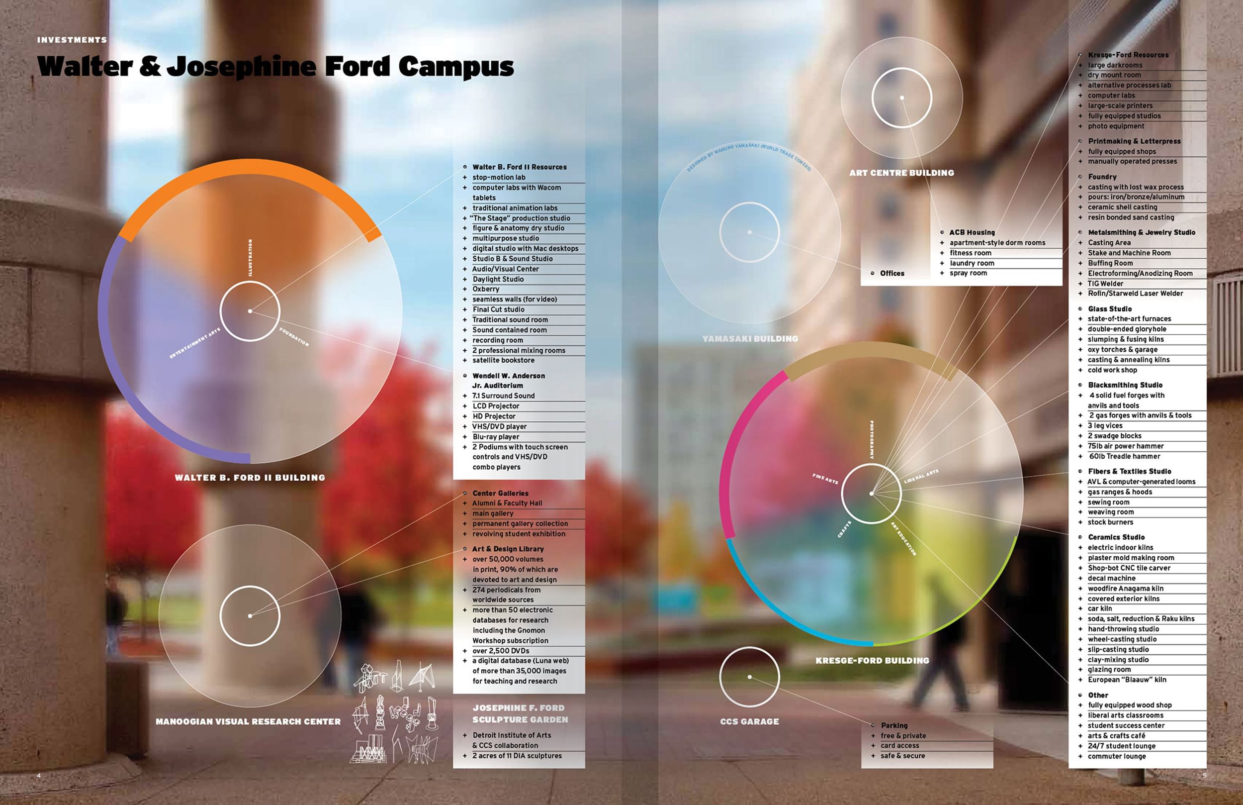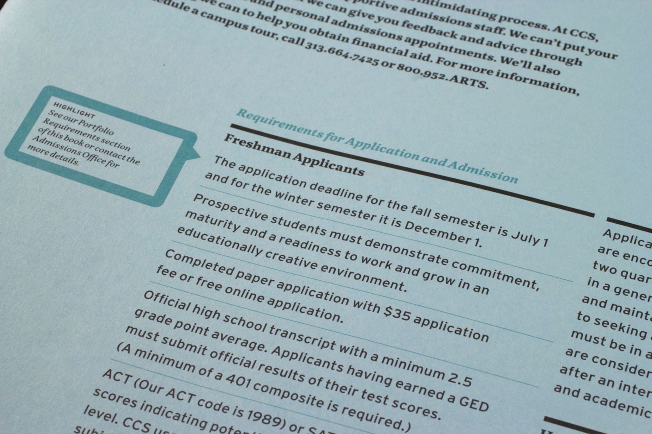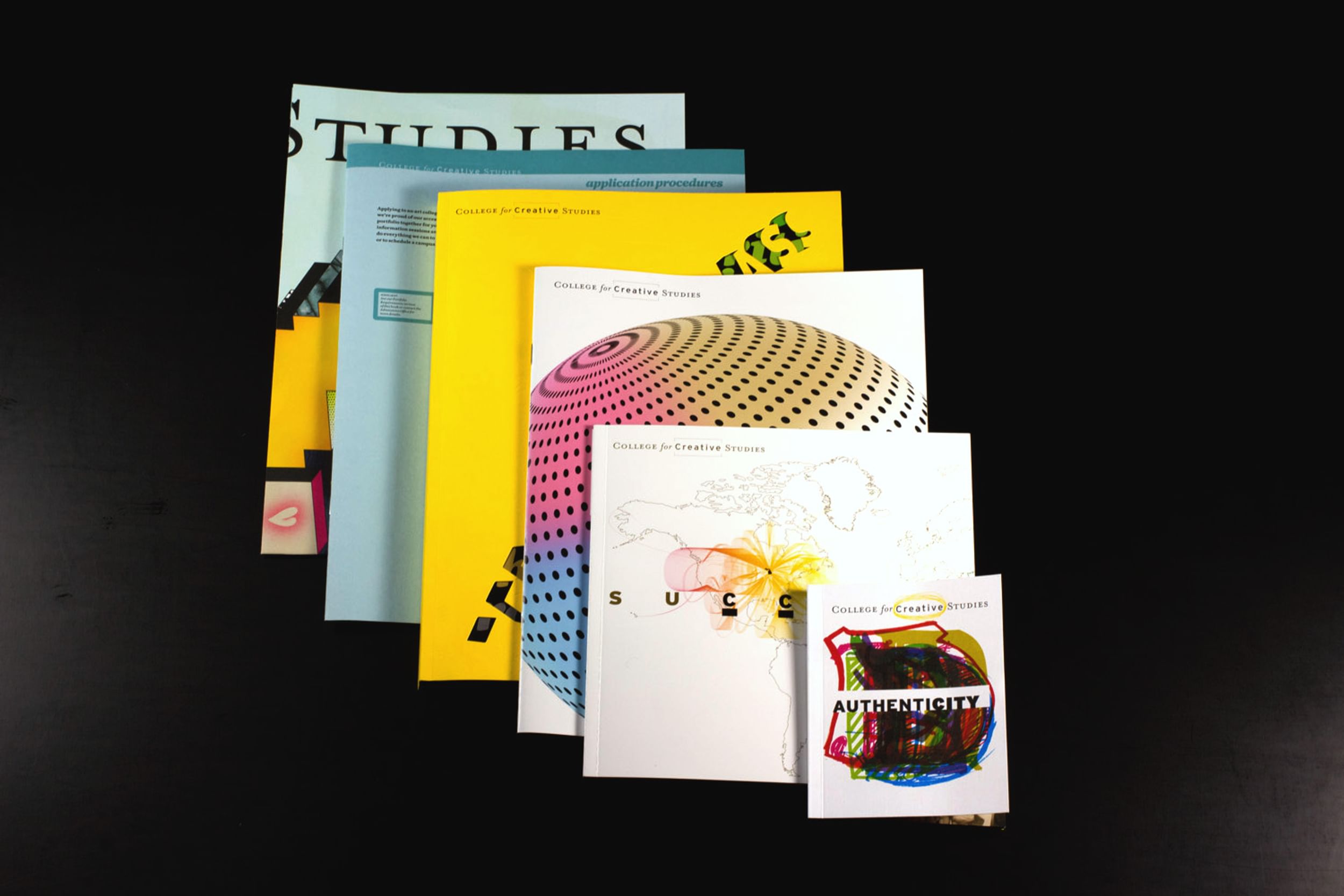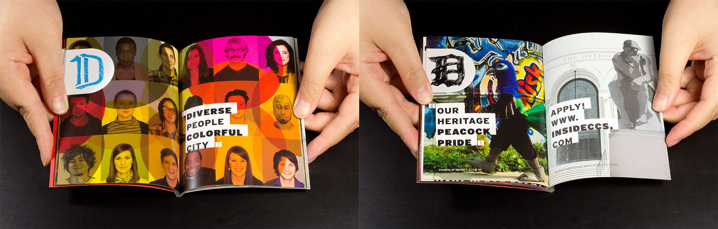 The College of Creative Studies (CCS) in Detroit approached Rick Valicenti to hold an undistorted mirror up to their school experience. Thirst insisted that all messaging and art work be about and by the students, faculty, and alumni. CCS communication materials would be as entirely honest and transparent as possible.