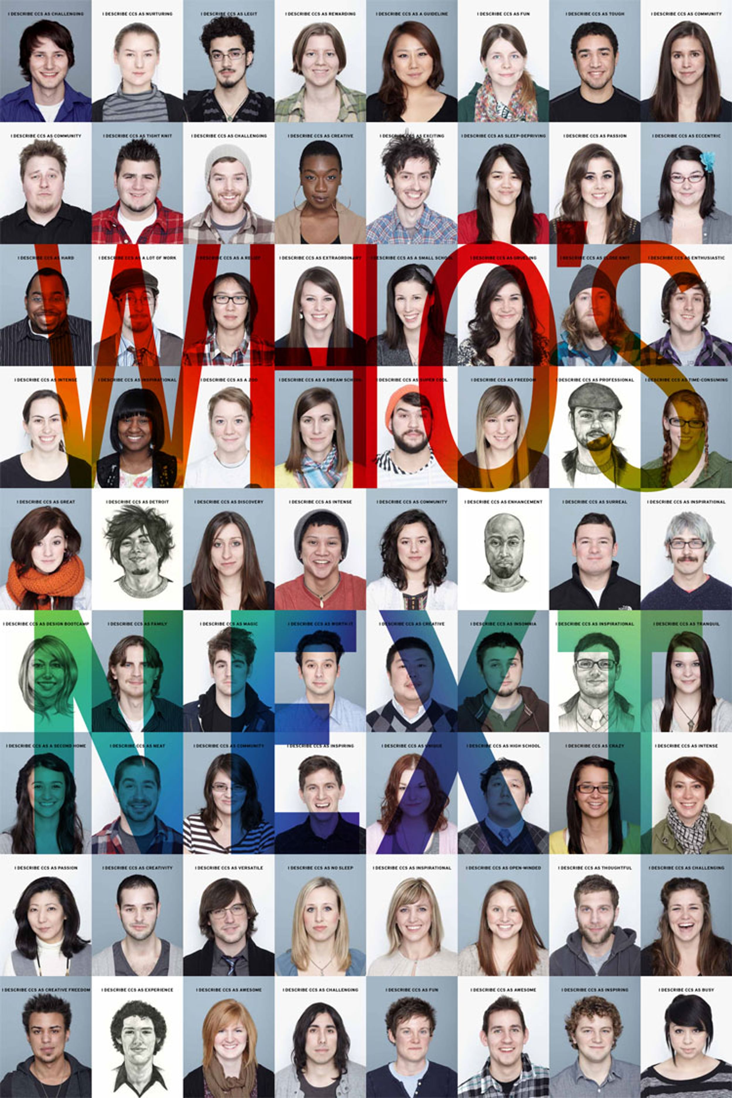 All photography is by CCS students under the direction of photography professor William Valicenti. Recent graduates were illustrated by the Illustration students.