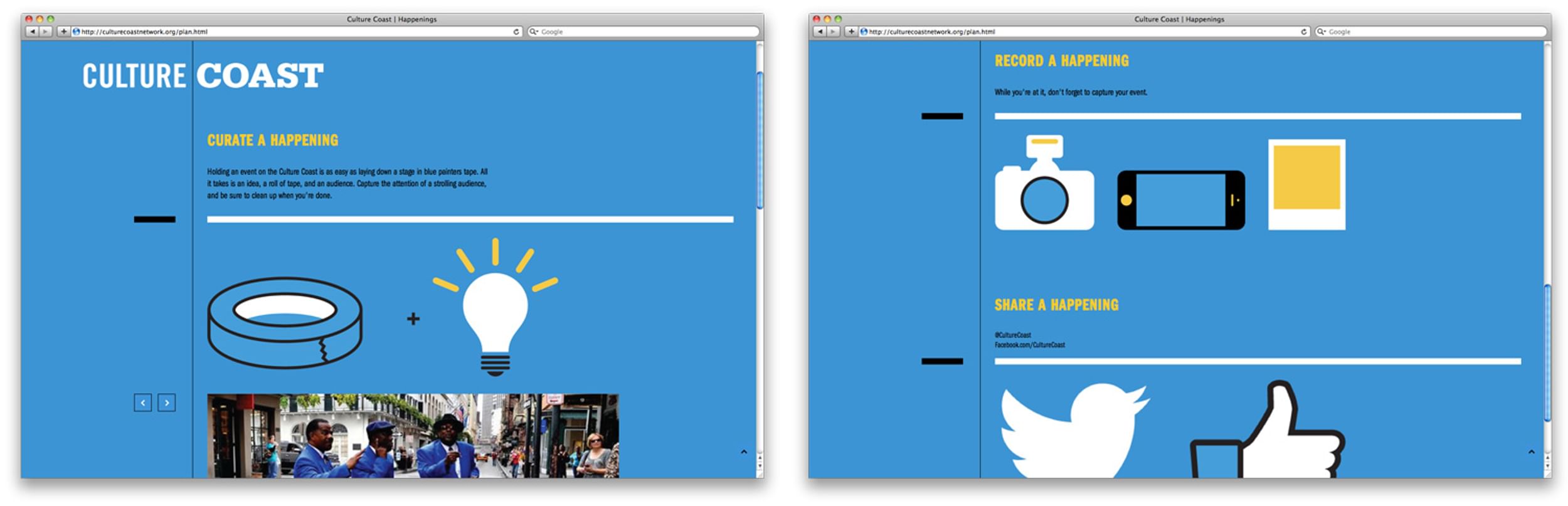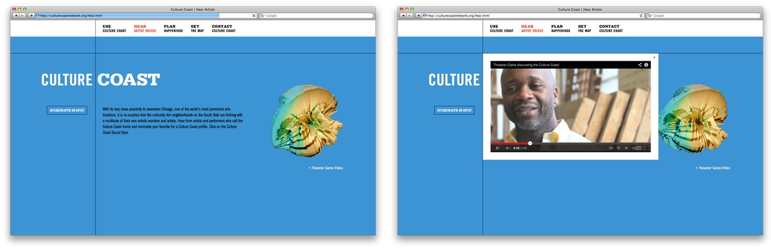 To create both a voice and visual identity, we developed a series of icons by taking the sound of residents saying "Culture Coast" and turning that data into visual three-dimensional forms. When all are seen together, they express the diversity of those living on the Culture Coast.