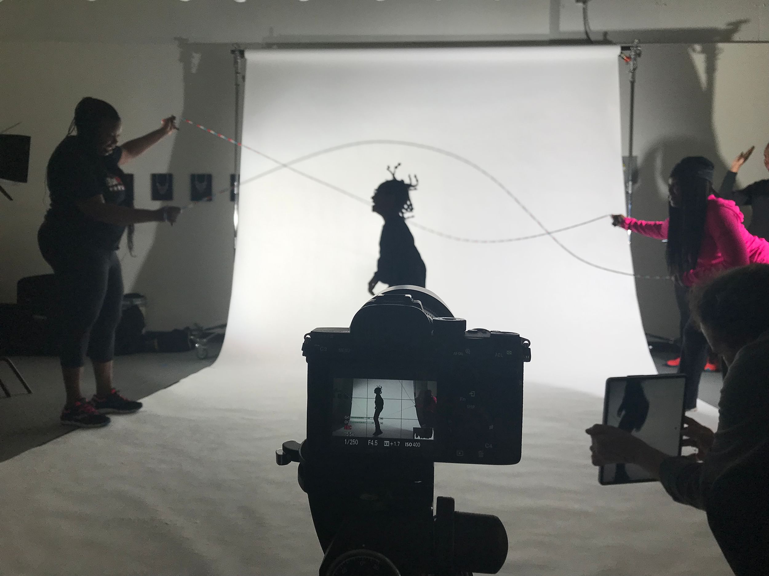 Thirst, led by Rick Valicenti, Leah Wendzinski, and Anna Mort produced three short films celebrating Chicago movement: stepping, double dutch, and street dancing. With the assistance of lighting designer, Brian Eaves, and the generous donation of a shooting location – Connect Gallery in Hyde Park, the team filmed over 40 individuals from all around Chicago.