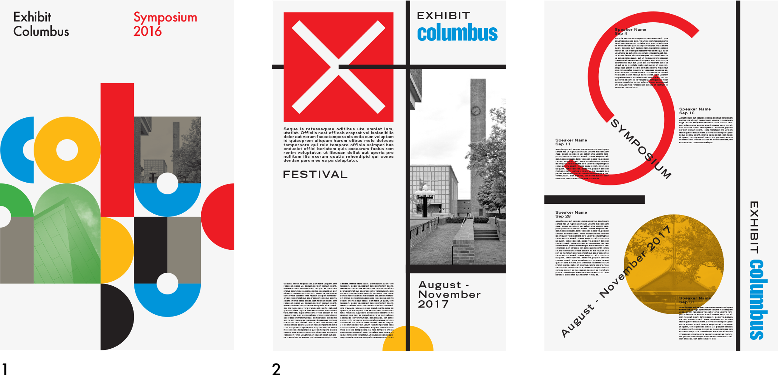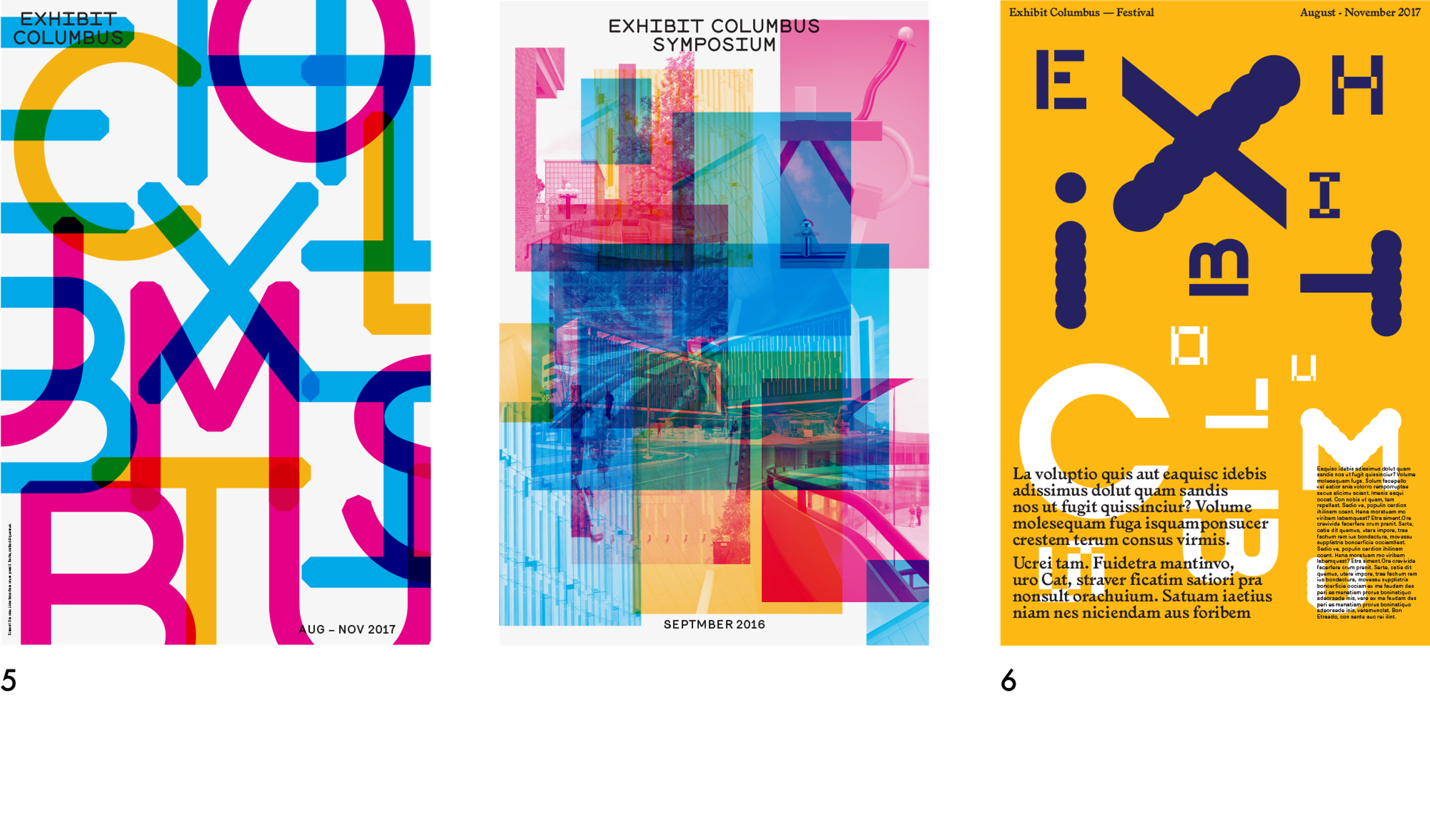 Thirst presented six graphic directions to the Exhibit Columbus Curatorial Team to jumpstart the conversation and focus the decision making. Each of the approaches and titles underscored specifics of the design brief.