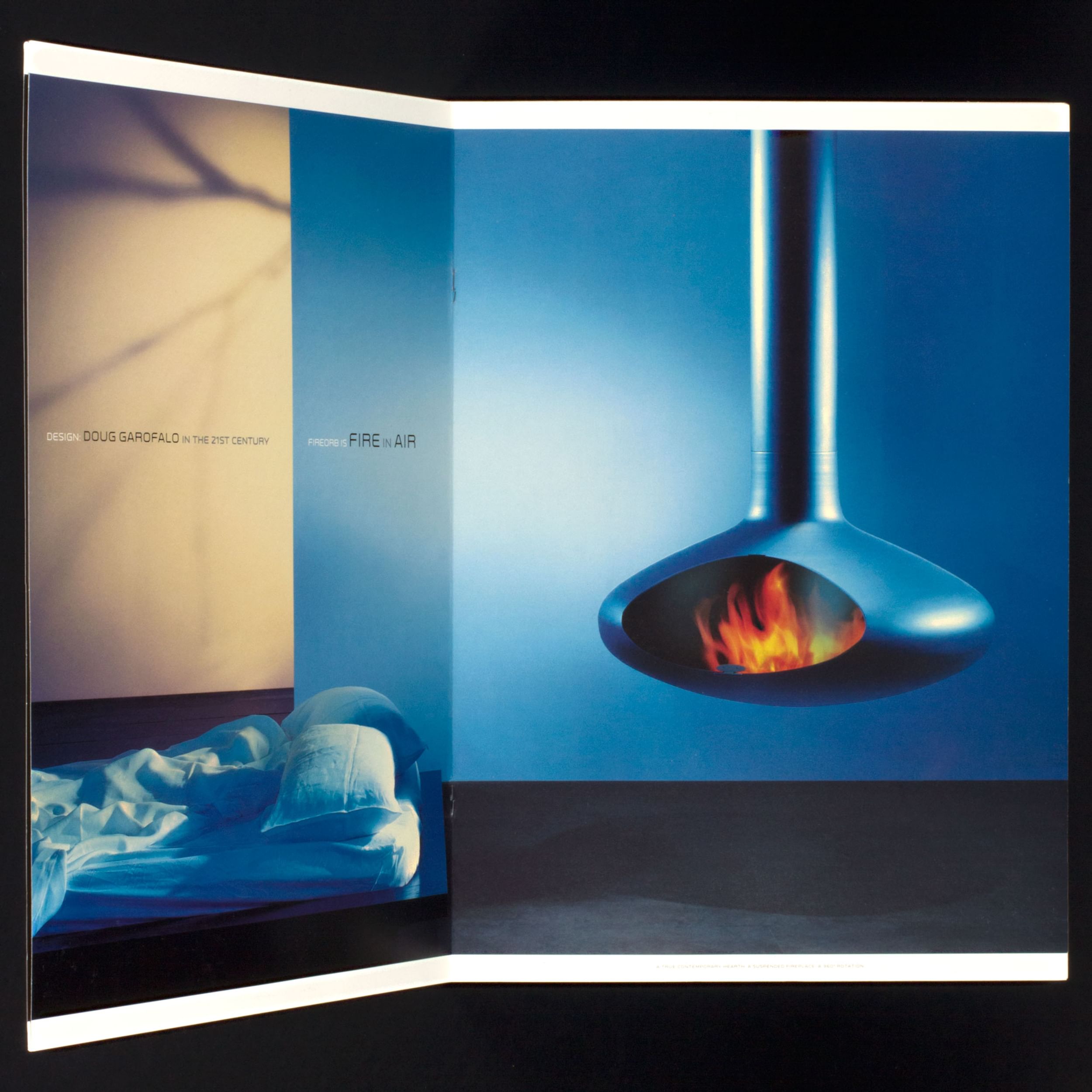 The basic graphic toolset launched the Fireorb, a suspended hearth with a 360 degree rotation field. Fireorb was designed by the late Doug Garofalo, AIA.