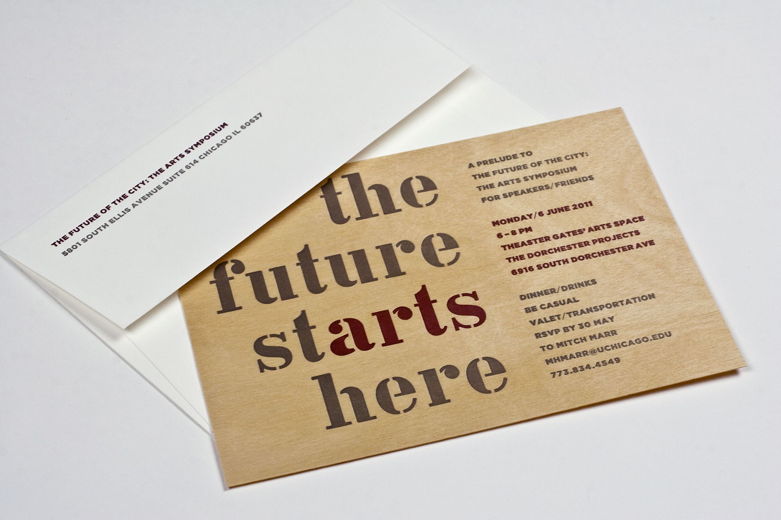 This invitation for the University of Chicago's evening at Theaster Gates' Dorchester Project is letterpressed in wood.