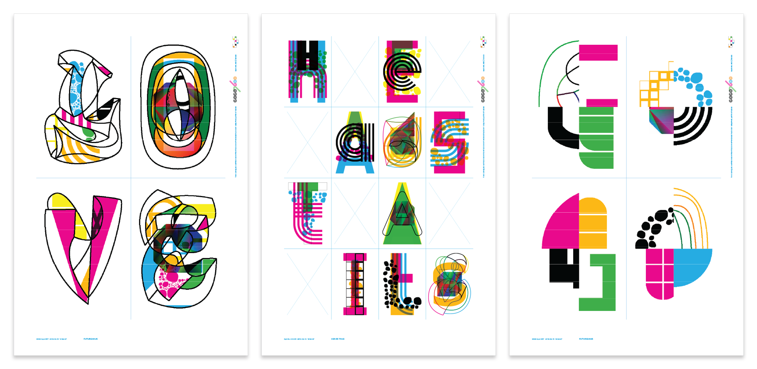 We looked towards the infamous exquisite corpse for inspiration — by using chance to combine different letterforms together, we could create a unique visual expression perfect for TYPEFACE: a exhibition about the best young typographic talent in Chicago.