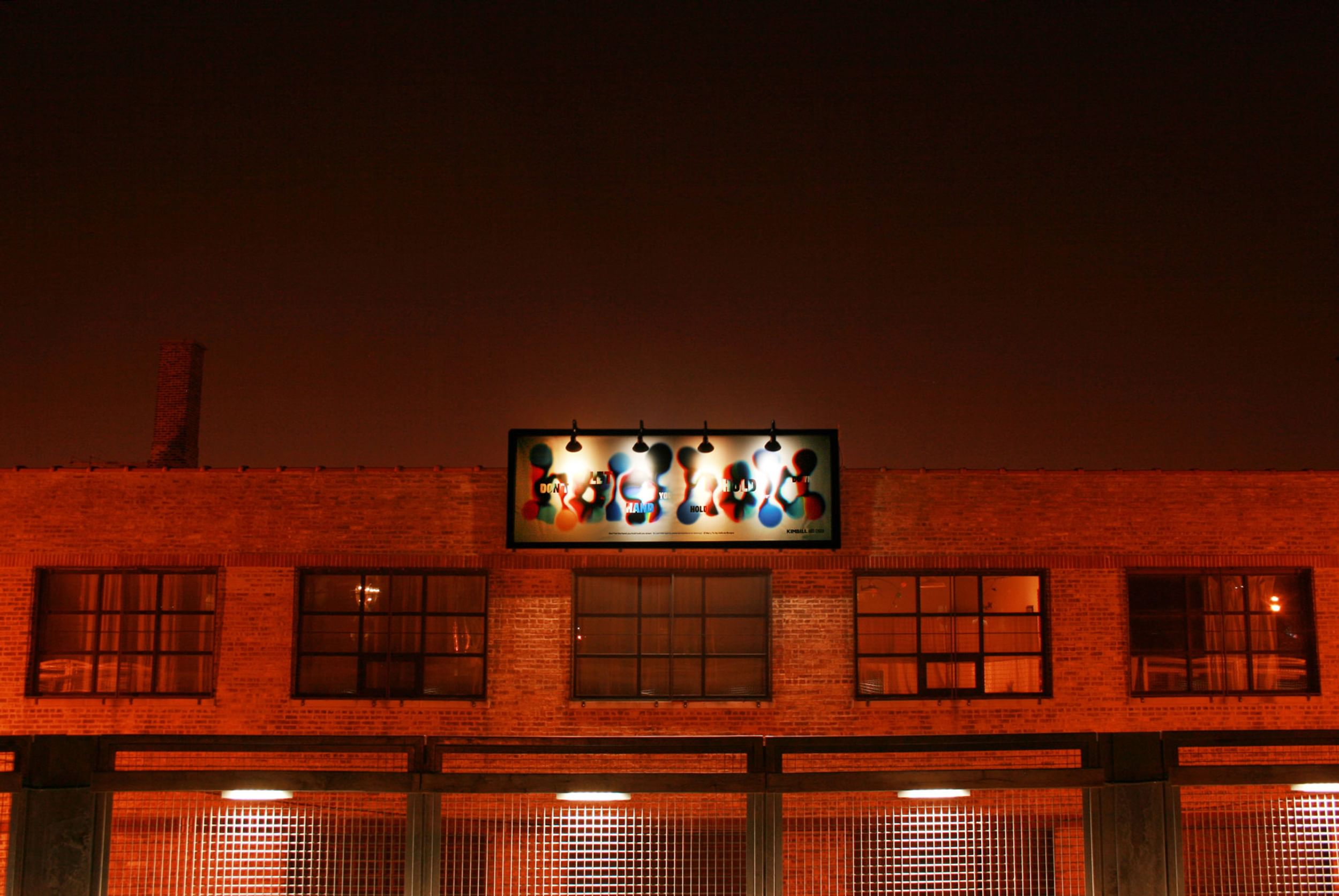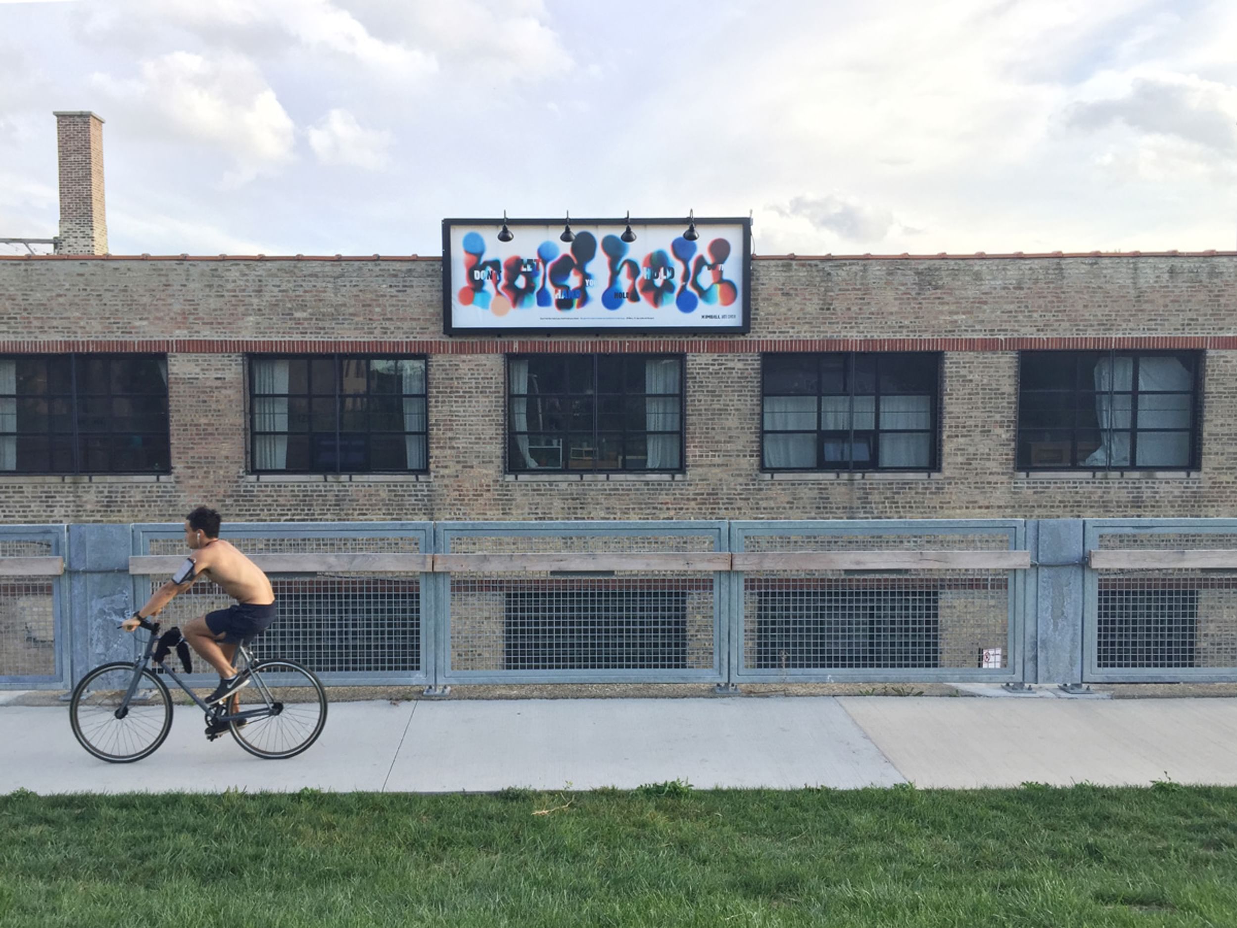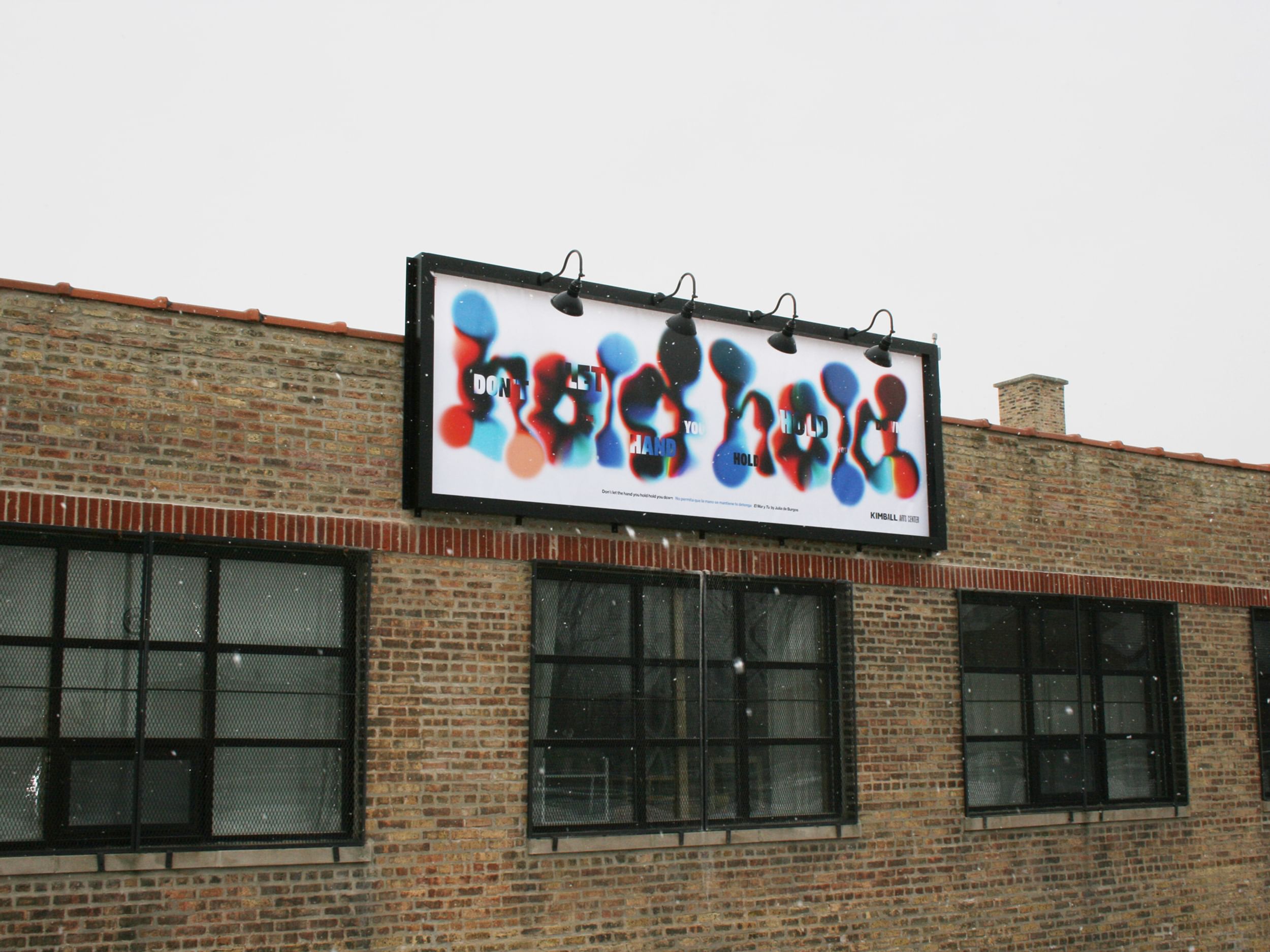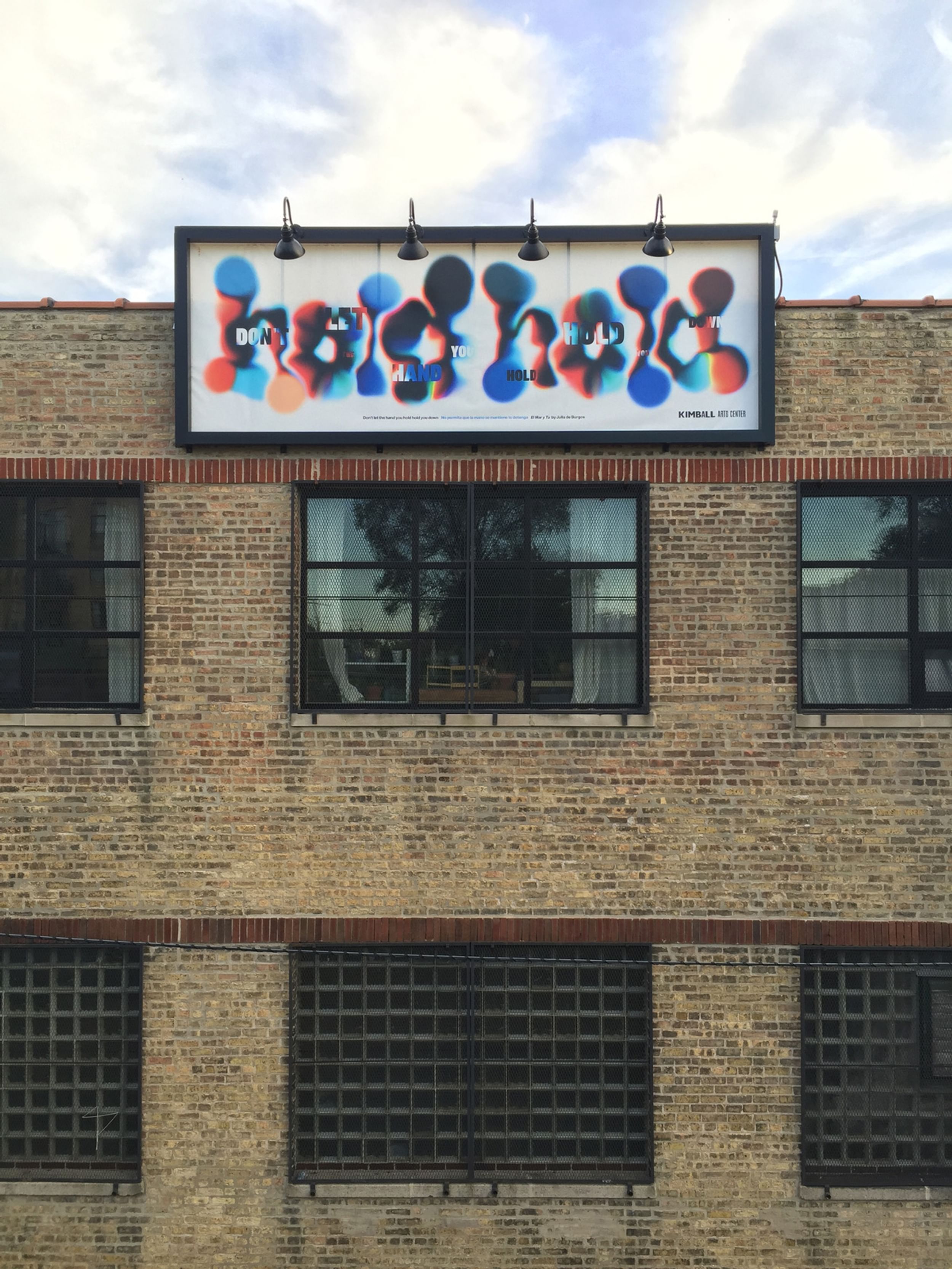 Rick Valicenti and Taek Kim designed Hold Hold, the first in a series of billboards presented by Skyline Design for the Kimball Arts Center. Visible only from the 606, the message is intended to "enrich local community" according to patron, Charlie Rizzo, who provided this text: