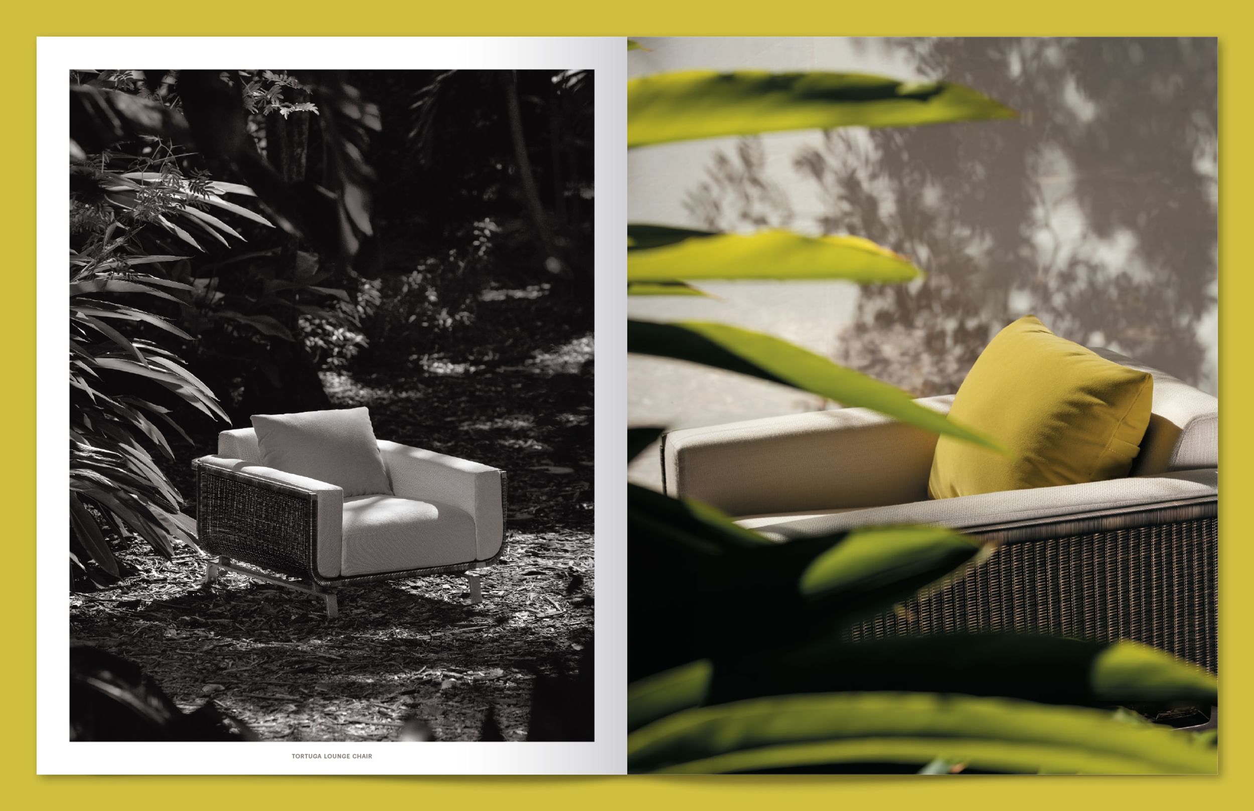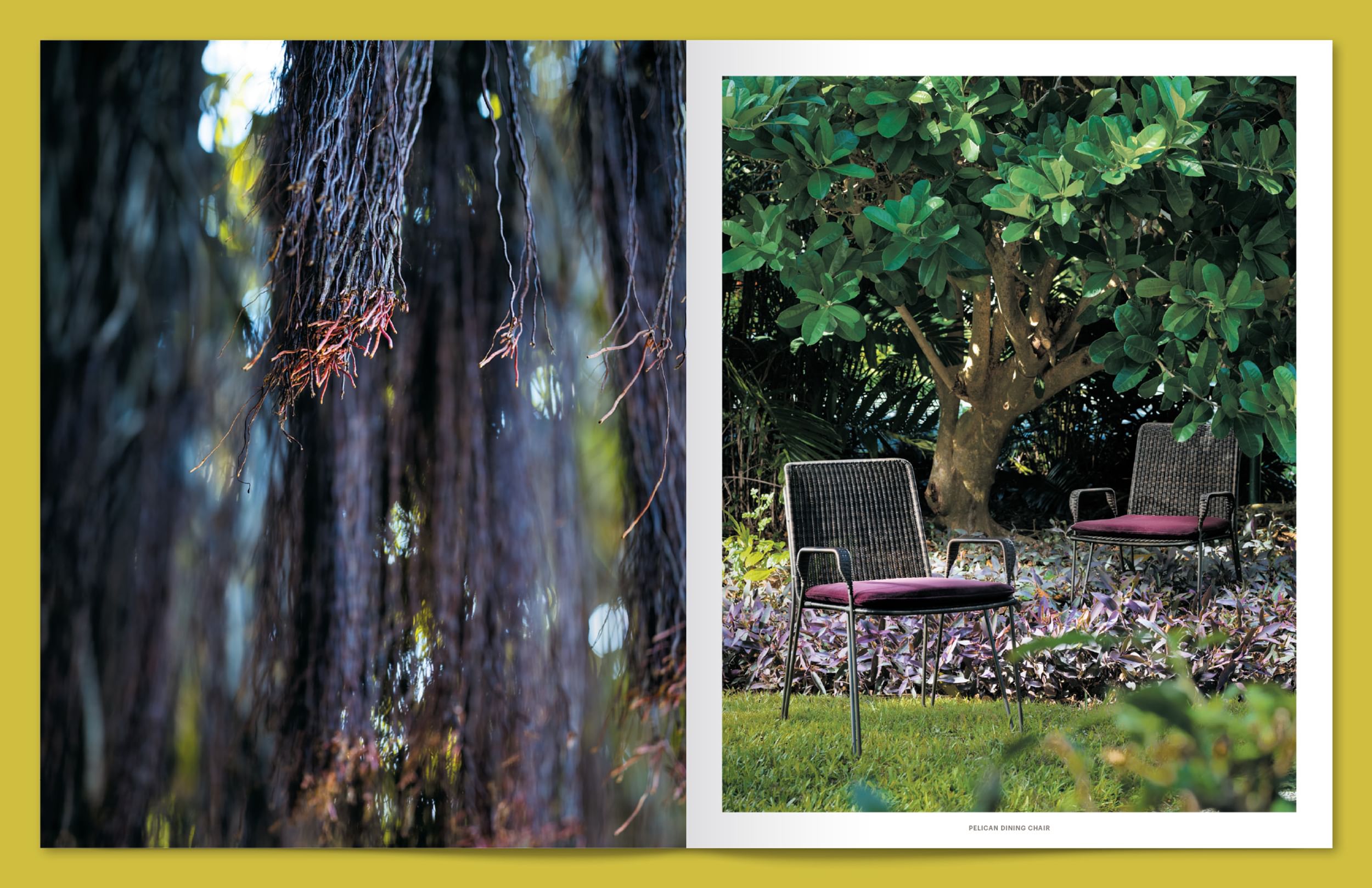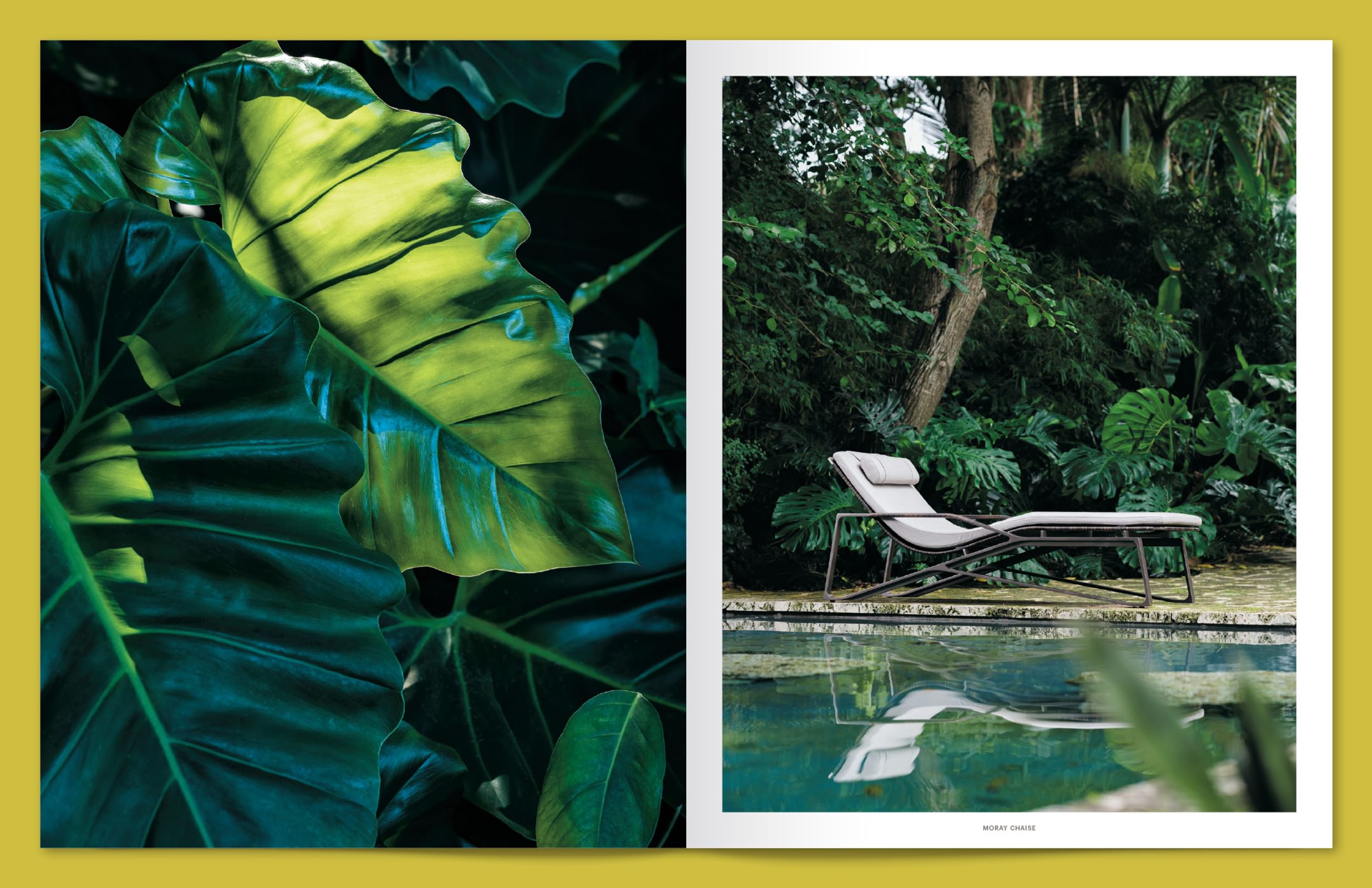 Under the image direction of Rick Valicenti, Paul Warchol photographed the new outdoor furniture collection for Holly Hunt over two days at the Kampong Botanic Garden in Miami for a 40-page catalog.