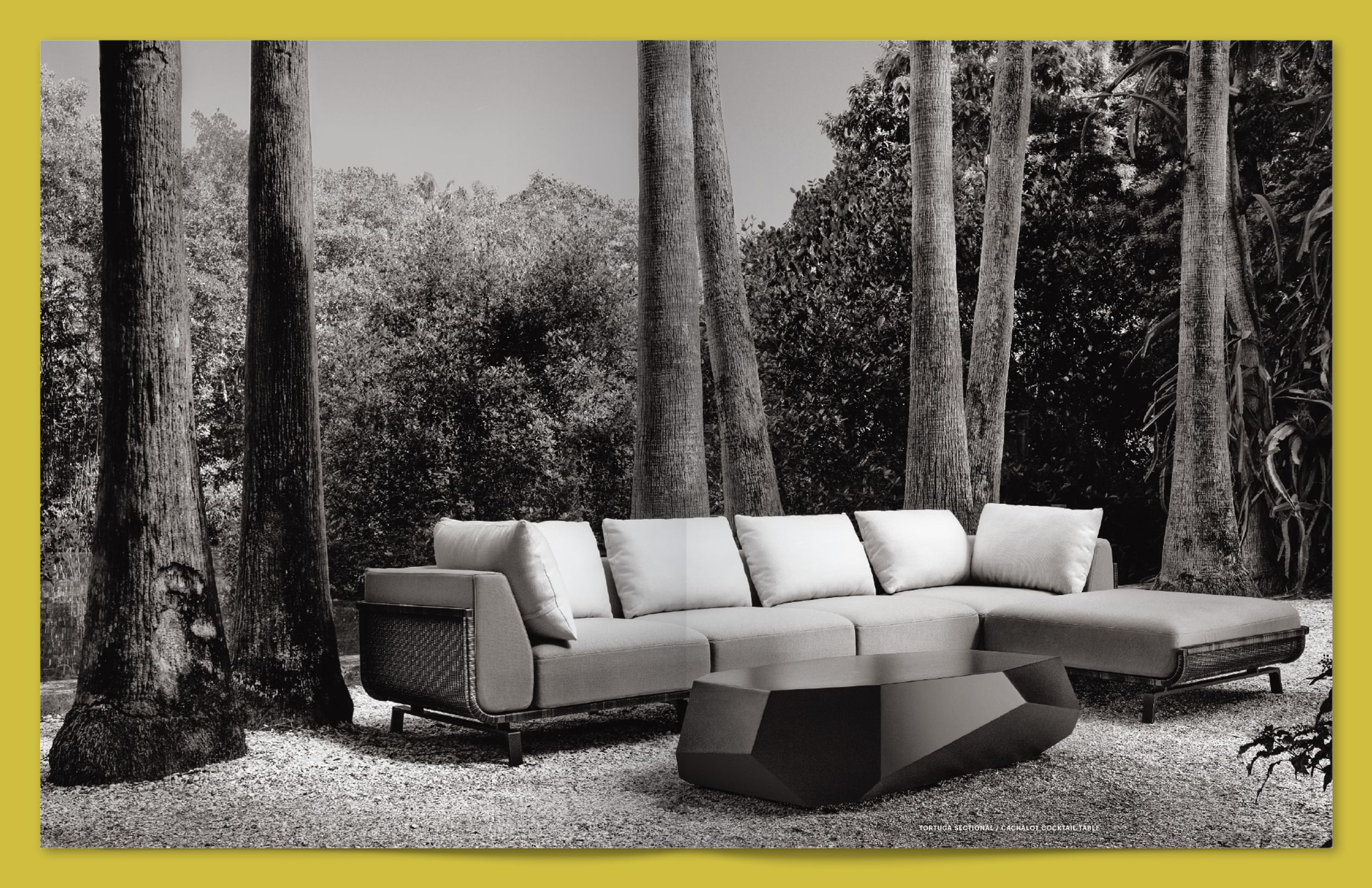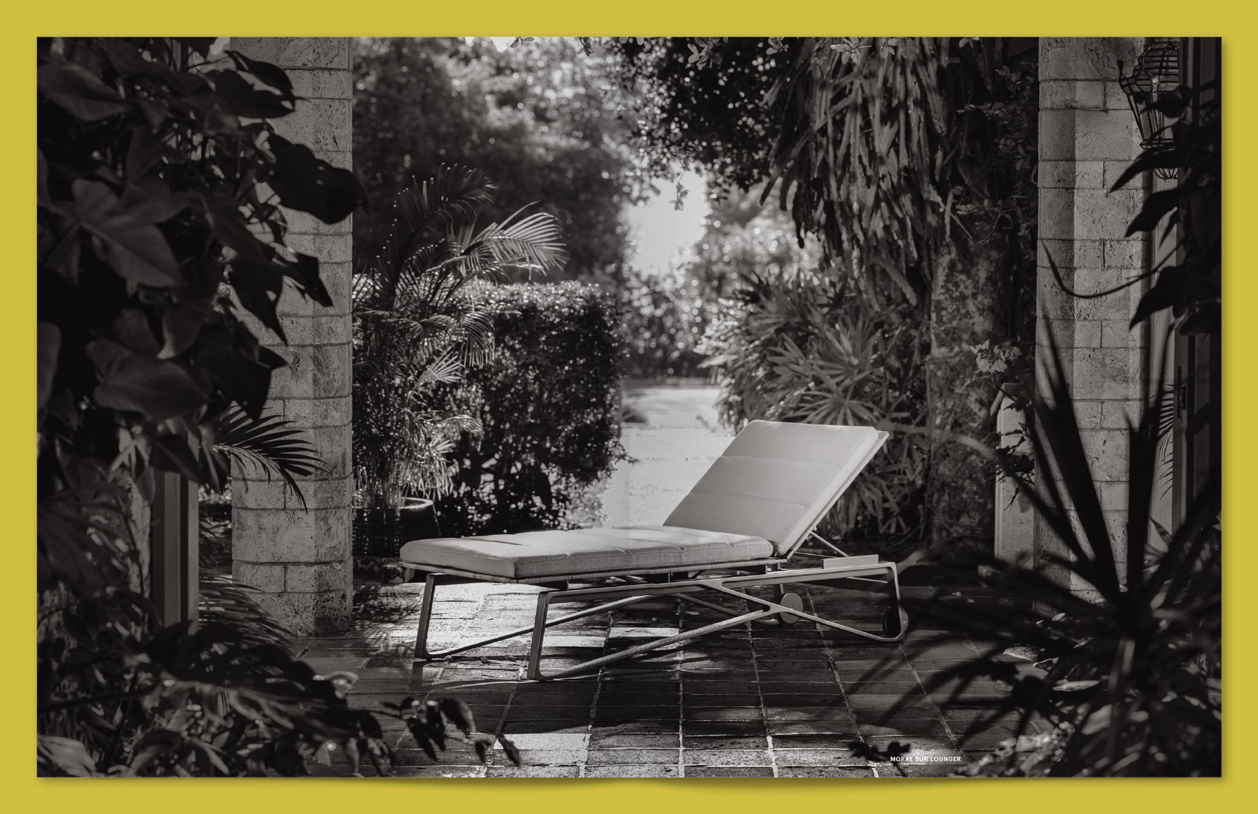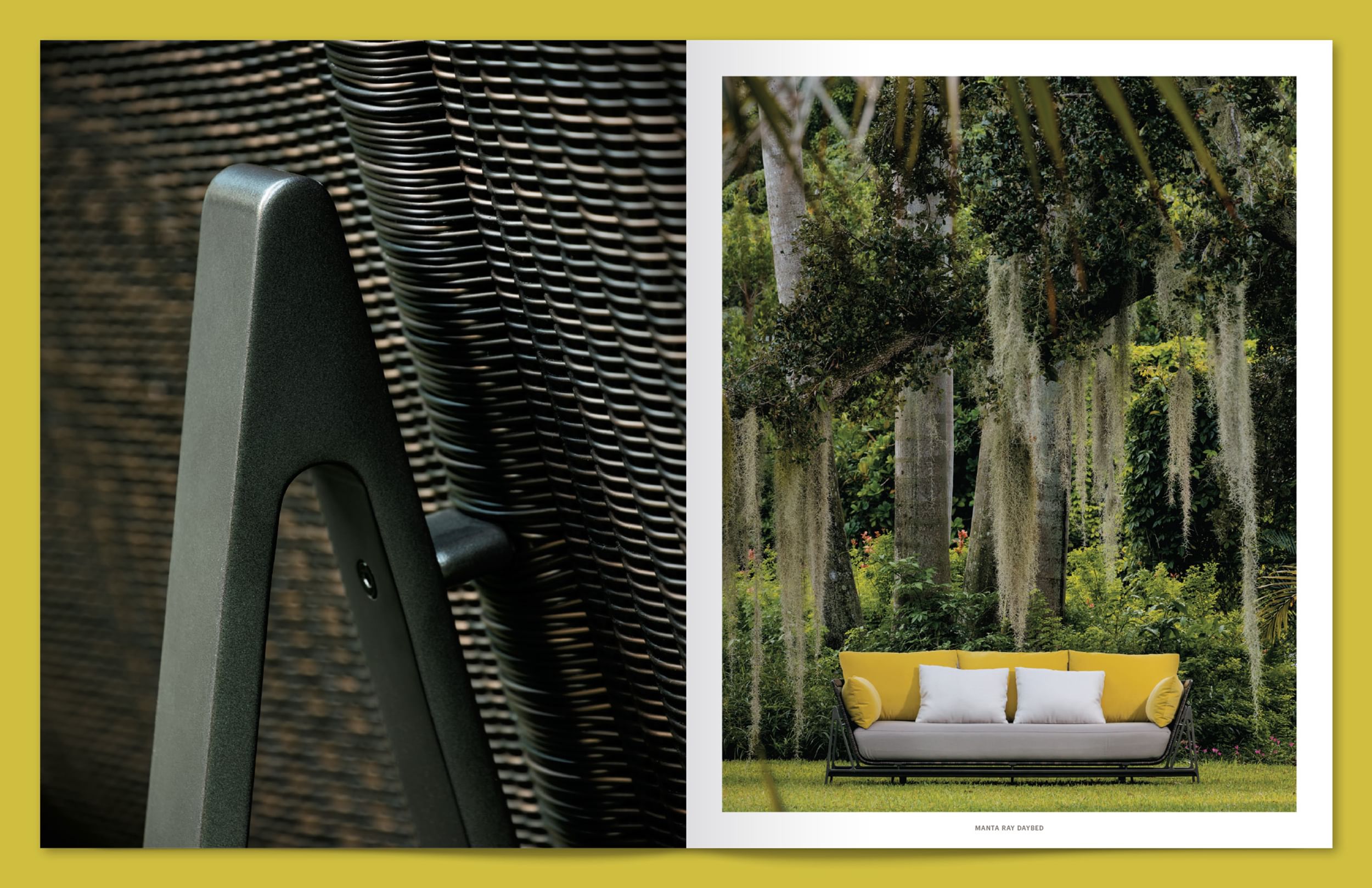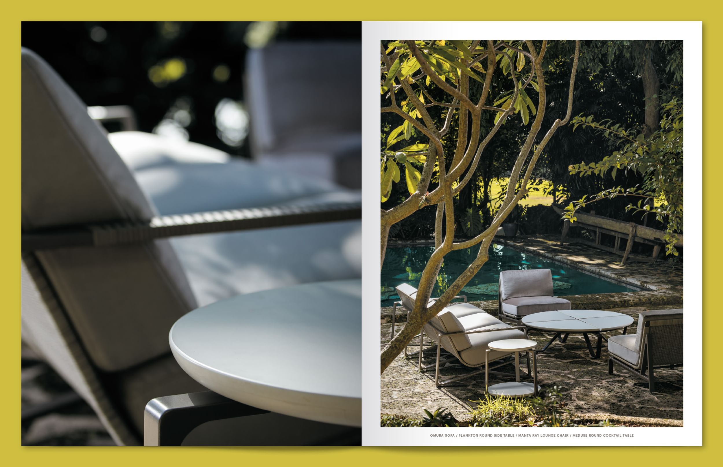 Under the image direction of Rick Valicenti, Paul Warchol photographed the new outdoor furniture collection for Holly Hunt over two days at the Kampong Botanic Garden in Miami for a 40-page catalog.