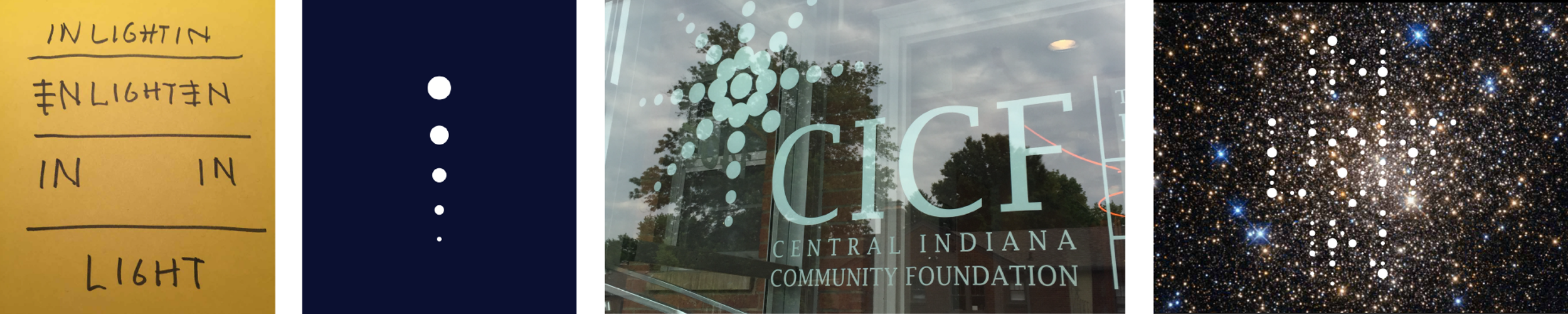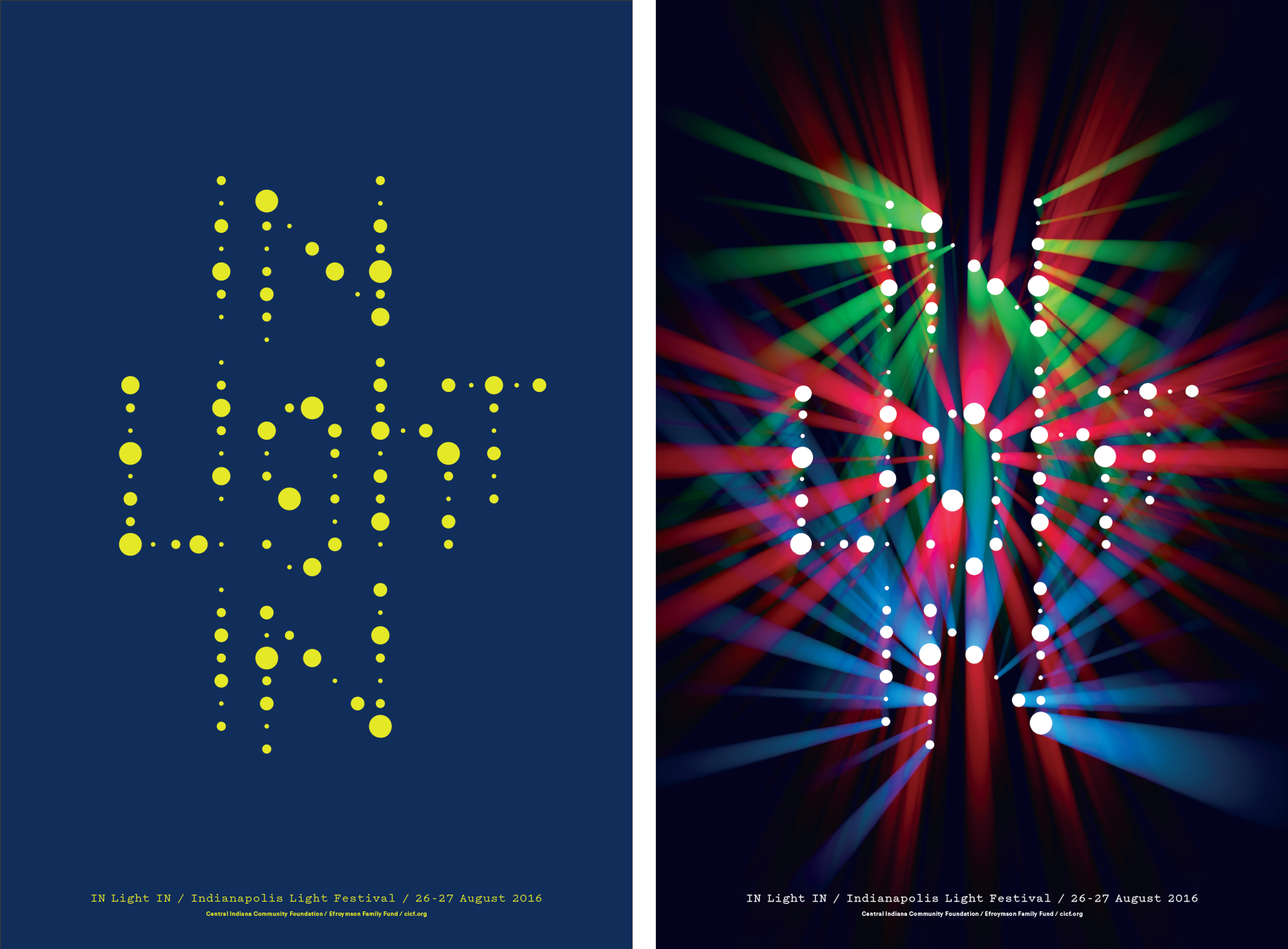 Indianapolis curator, Joanna Nixon, invited Thirst to brand Indianapolis’ first light festival. In the presentation of naming the Indianapolis Indiana Light festival, Rick Valicenti reminded the Central Indiana Community Foundation that only one city in America could rightfully claim IN Light IN as the name for its two-night festival.