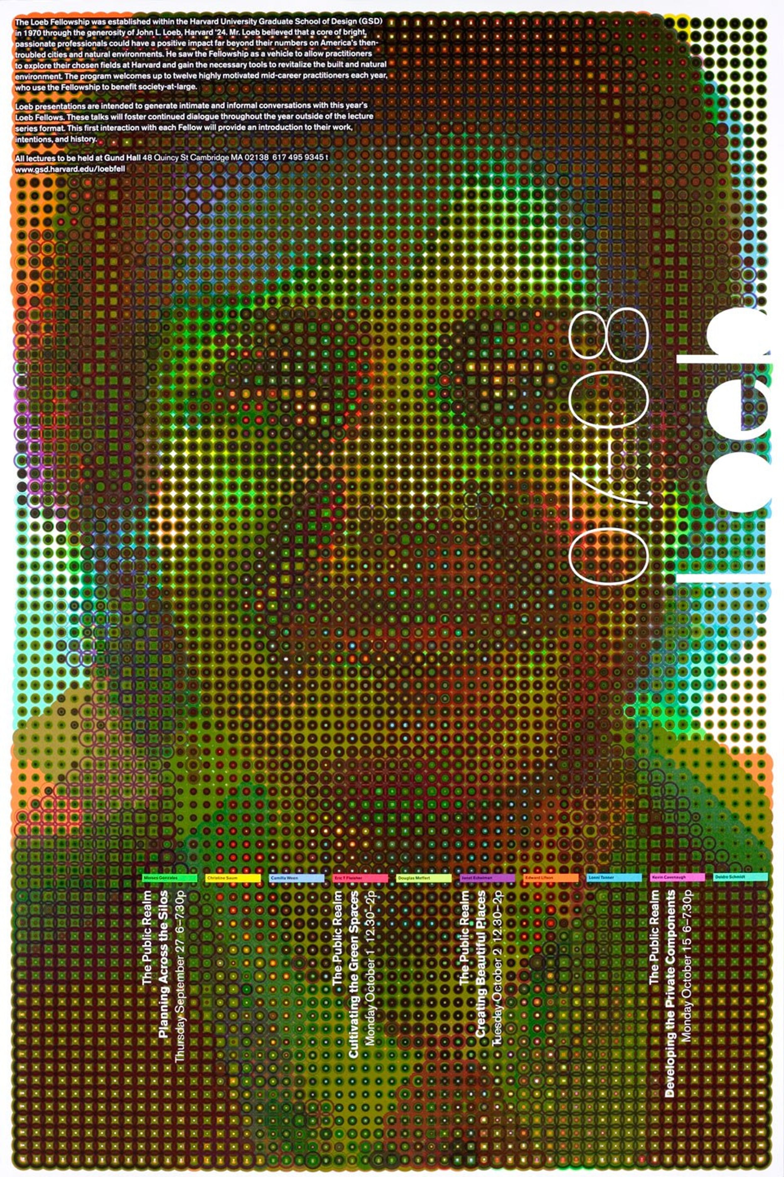 2007/08's Loeb Fellowship poster features digitally rendered faces of all 10 fellows layered on top of one another to create a Chuck-Close-like topography.