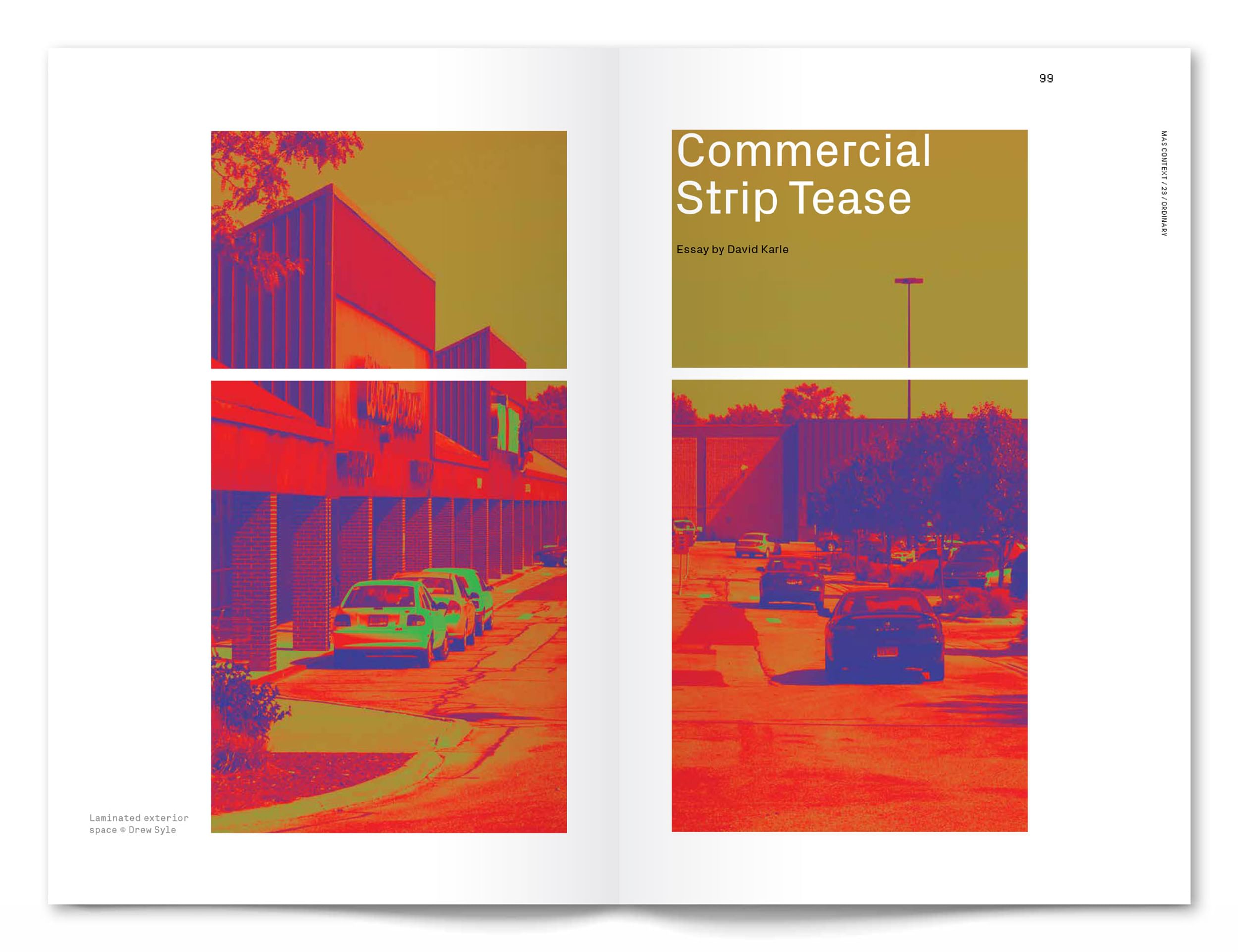This issue presented a chance to re-examine the MAS Context guidelines system. We reduced the publication system to one body text size with one measure length, and limited the headline sizes. The resulting 204 page issue is richer with it’s limitation, than the previous issue’s freedom.