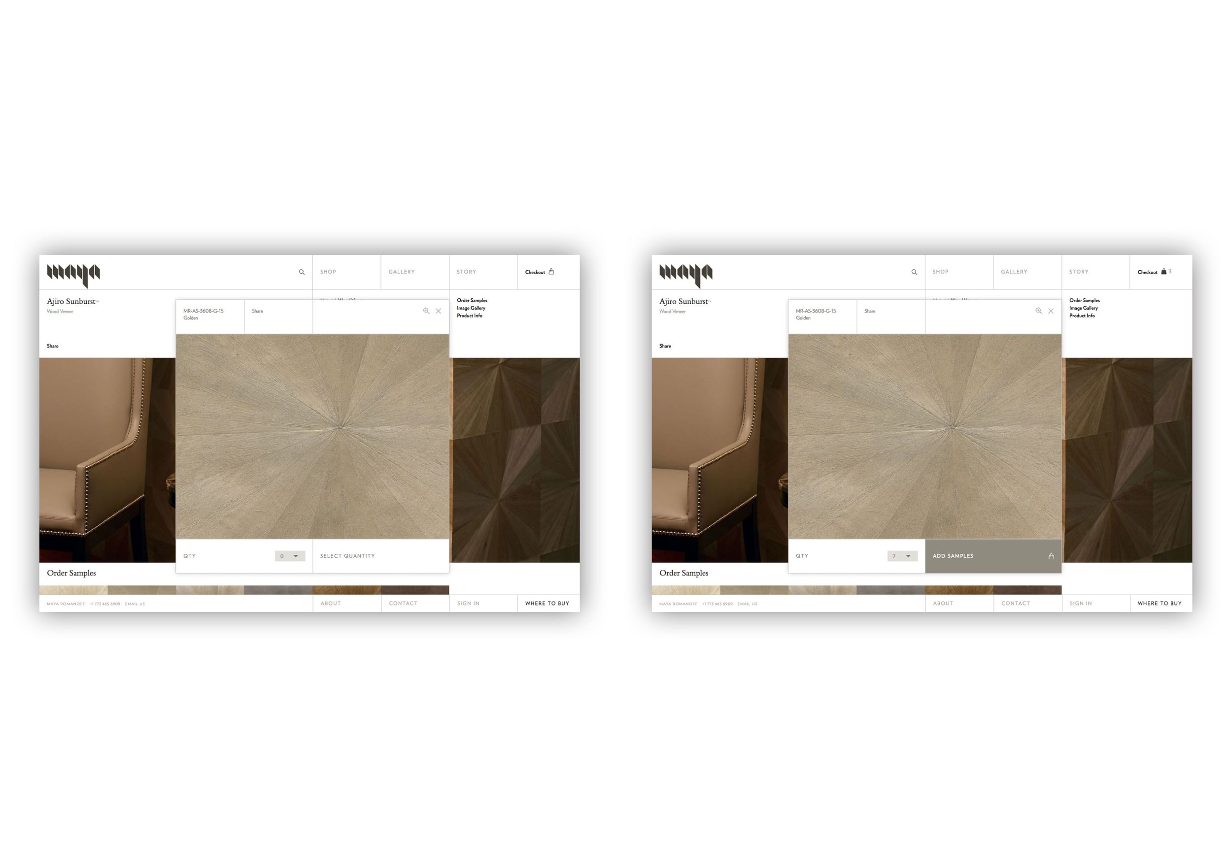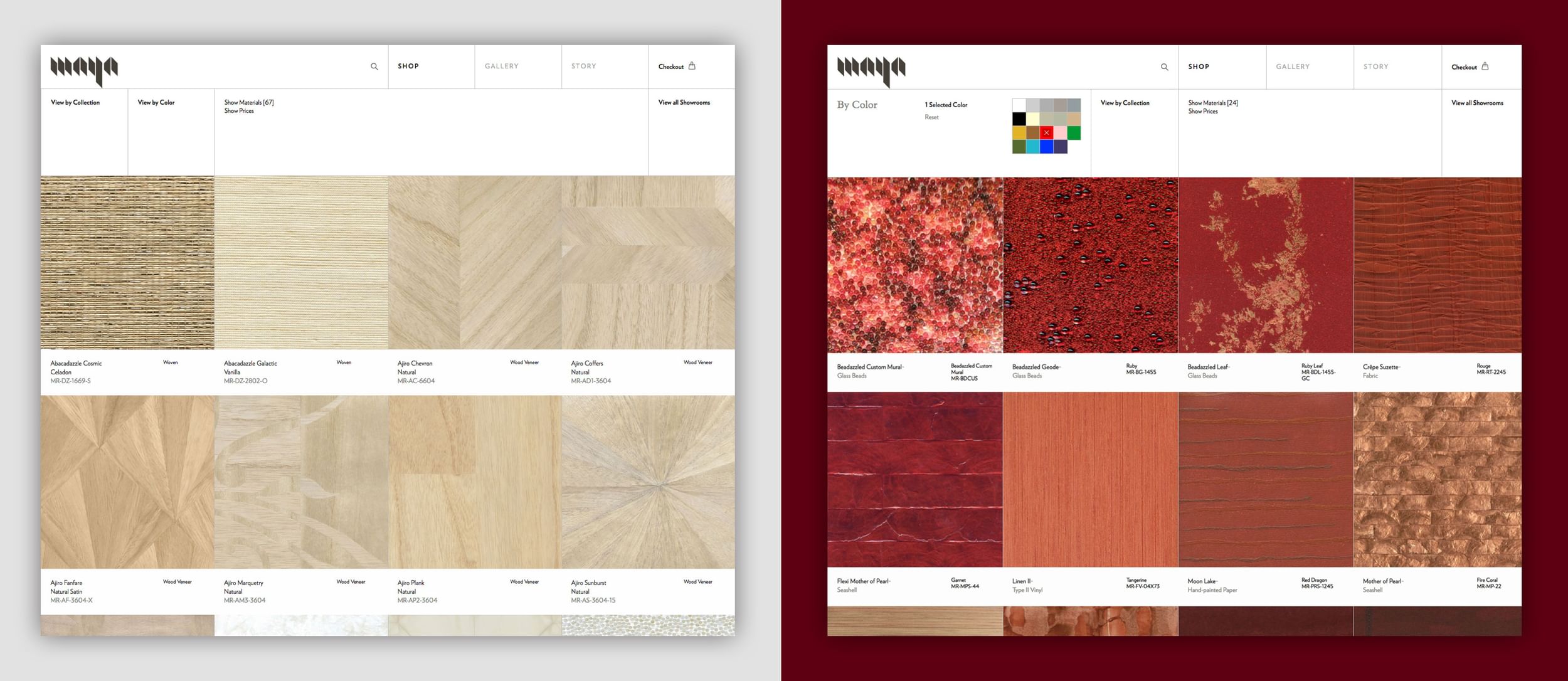 Features such as responsive design, sorting, live search, immersive imagery, and a fluid checkout/cart experience allow clients to feel the richness of each material seamlessly.