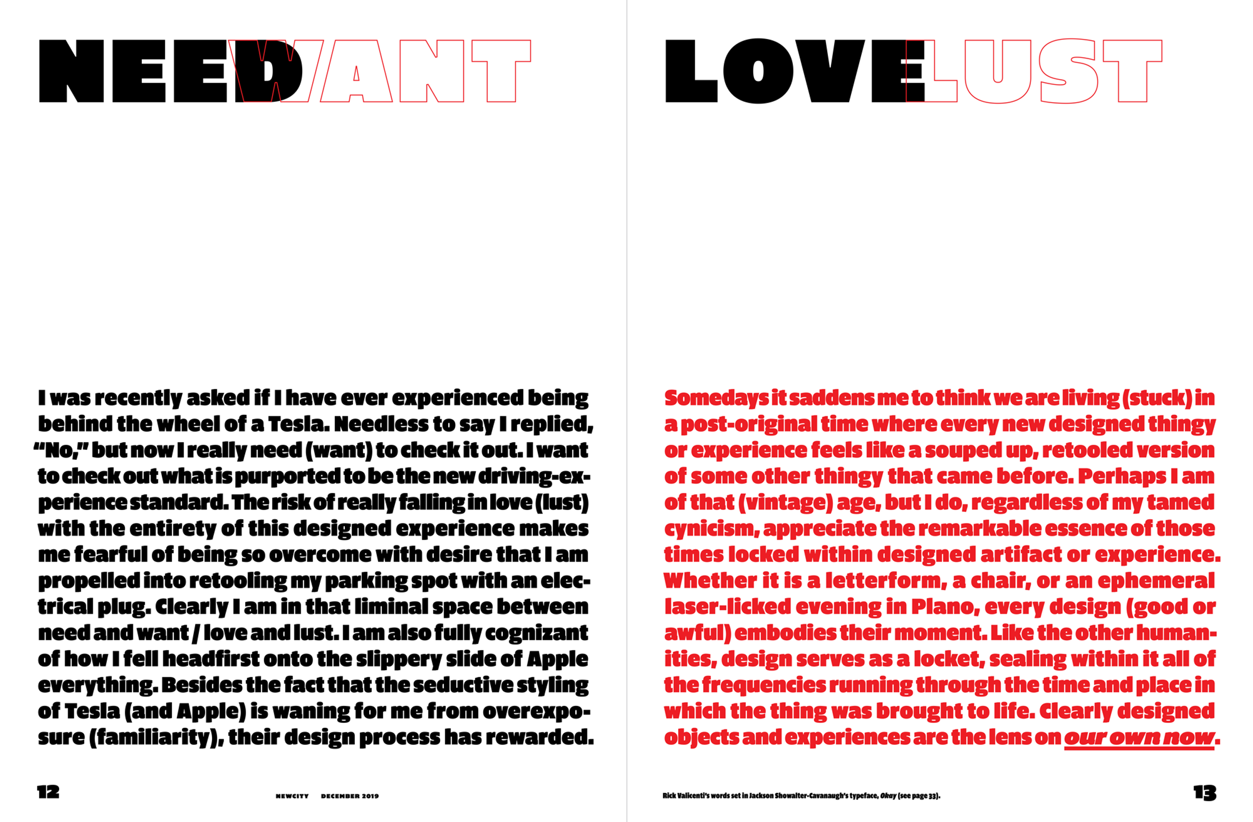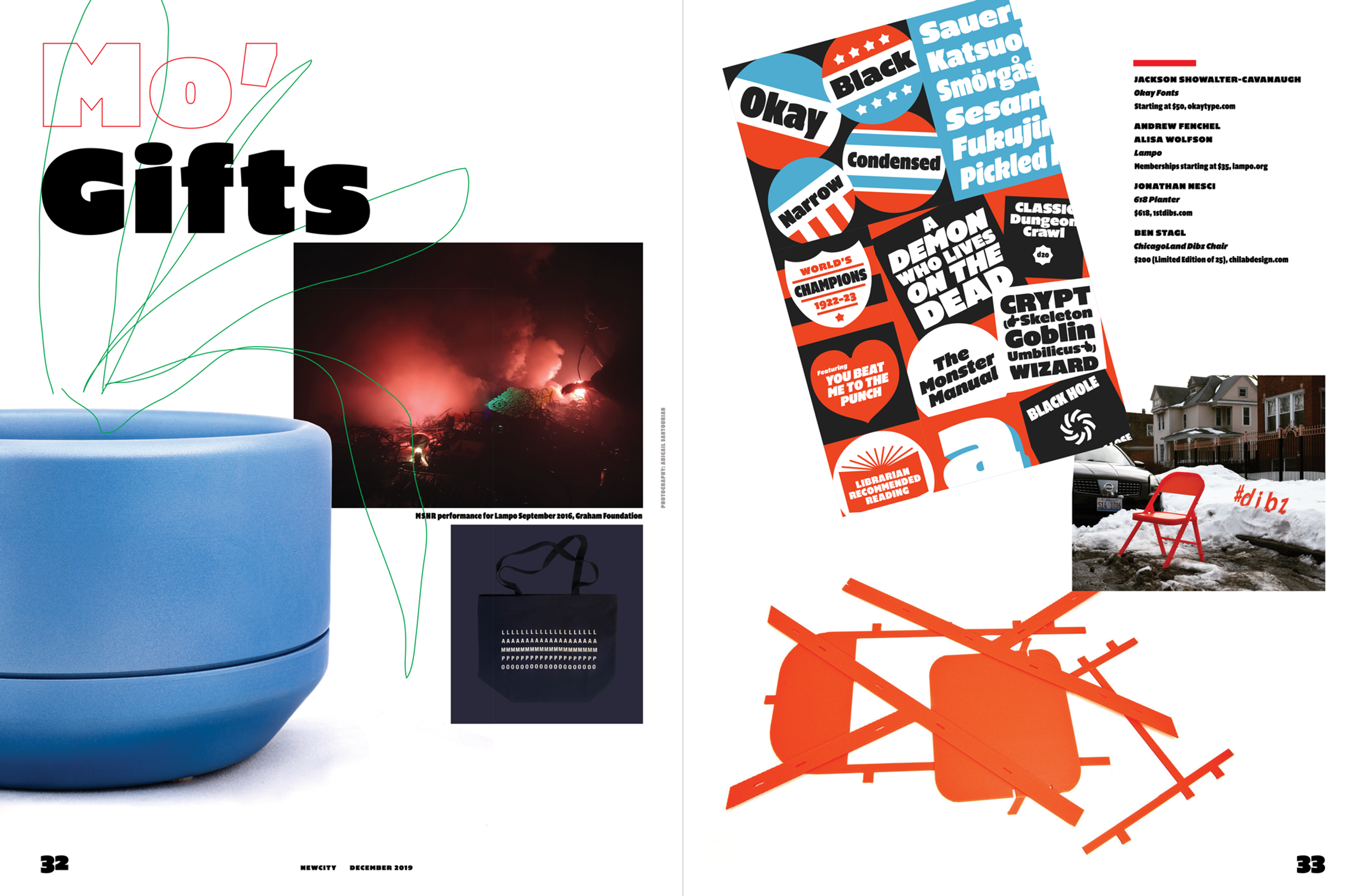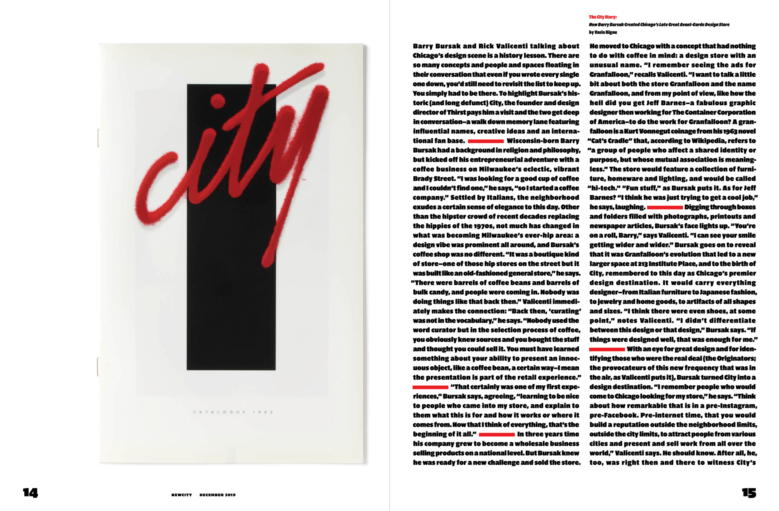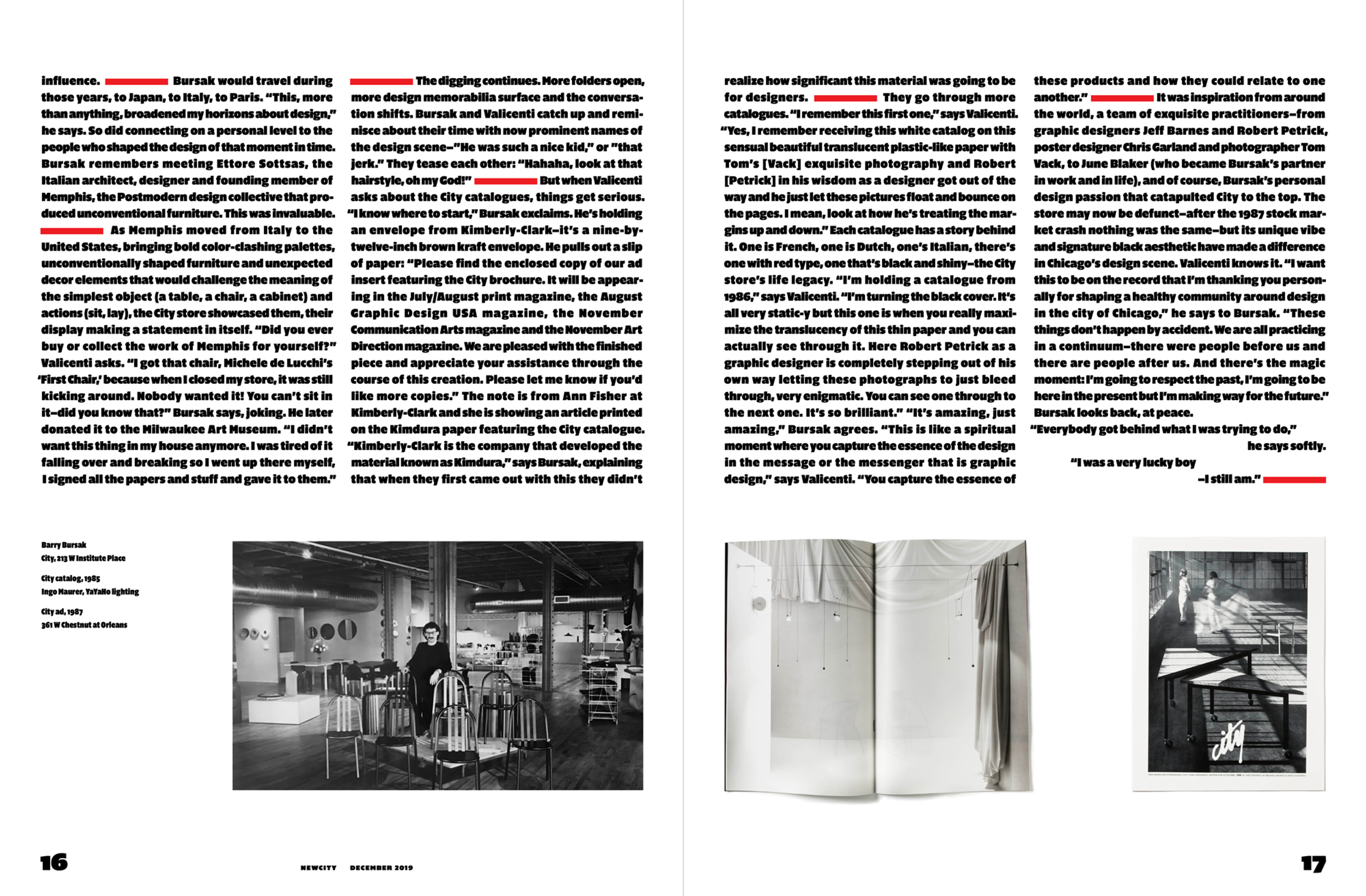 Newcity's December issue is a showcase for Chicago's designed object scene, and this year the focus widened to feature designed experiences. Rick Valicenti and Anna Mort helped Newcity curate and design the latest issue, including a conversation with Barry Bursak, owner of Chicago's historic design, City, interviews with Tom Vack, Petra Bachmaier and Sean Gallerostore of Luftwerk, Alyx Harch, Ayush Kasliwal and Mike Dreeben of AKMD, Seth Keller, Dee Clements, and a number of Chicago-designed objects and experiences ready for gifting.