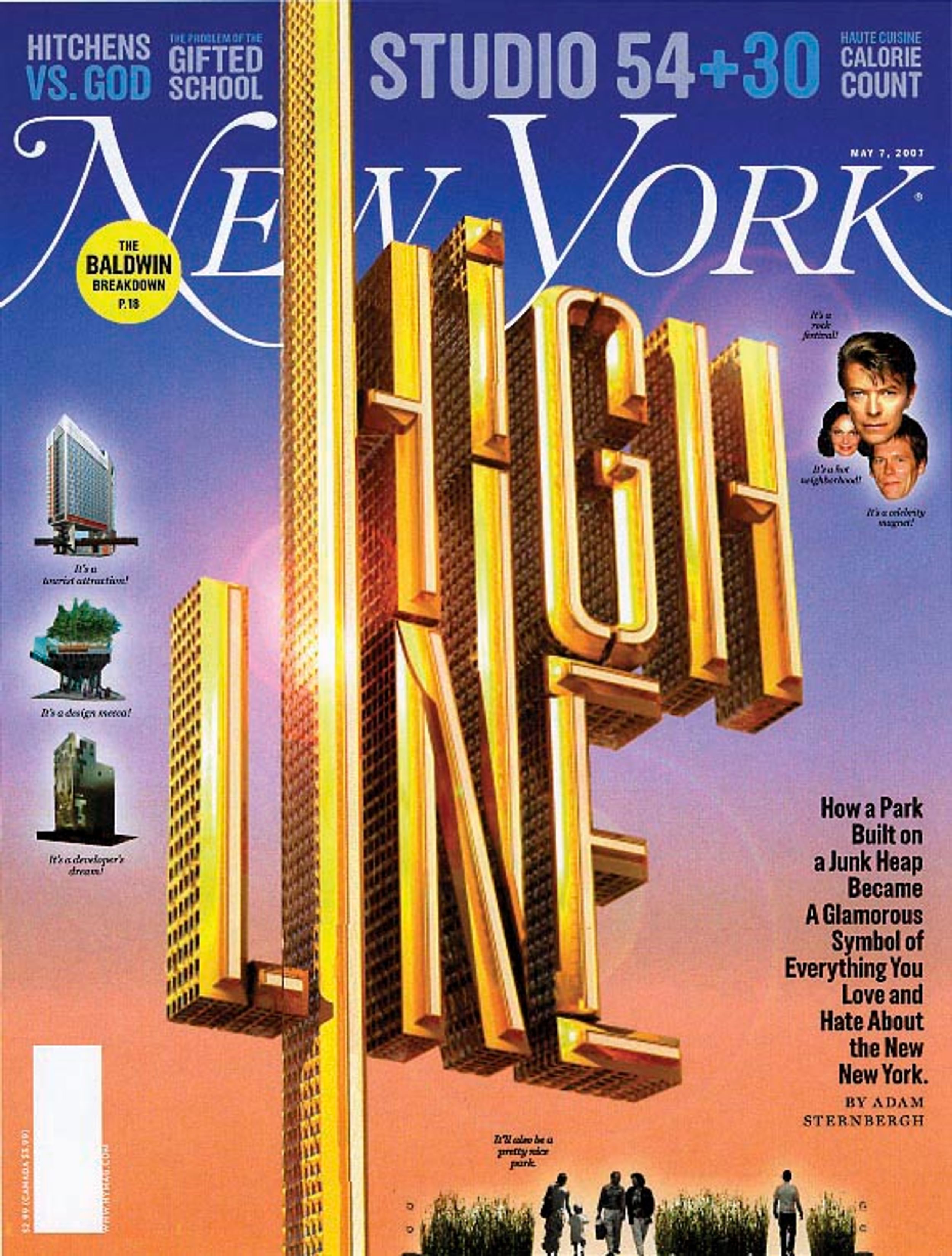 This cover illustration for New York Magazine lights up the west side's posh High Line in the spirit of Saul Bass' original artwork for West Side Story.