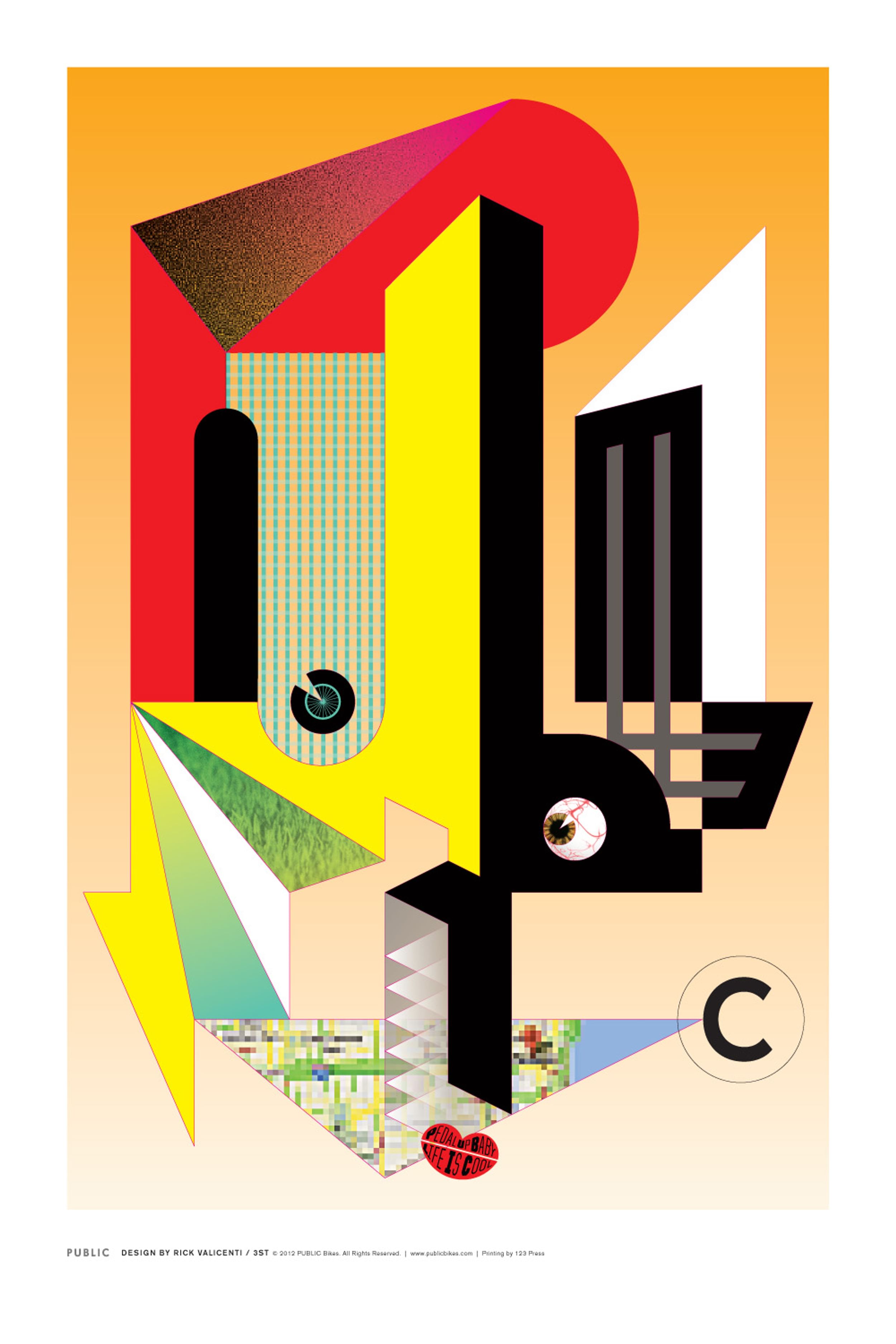 Promotional poster for PUBLIC Bikes campaign, 2013. View all the posters by twenty-seven different designers on PUBLIC's website.