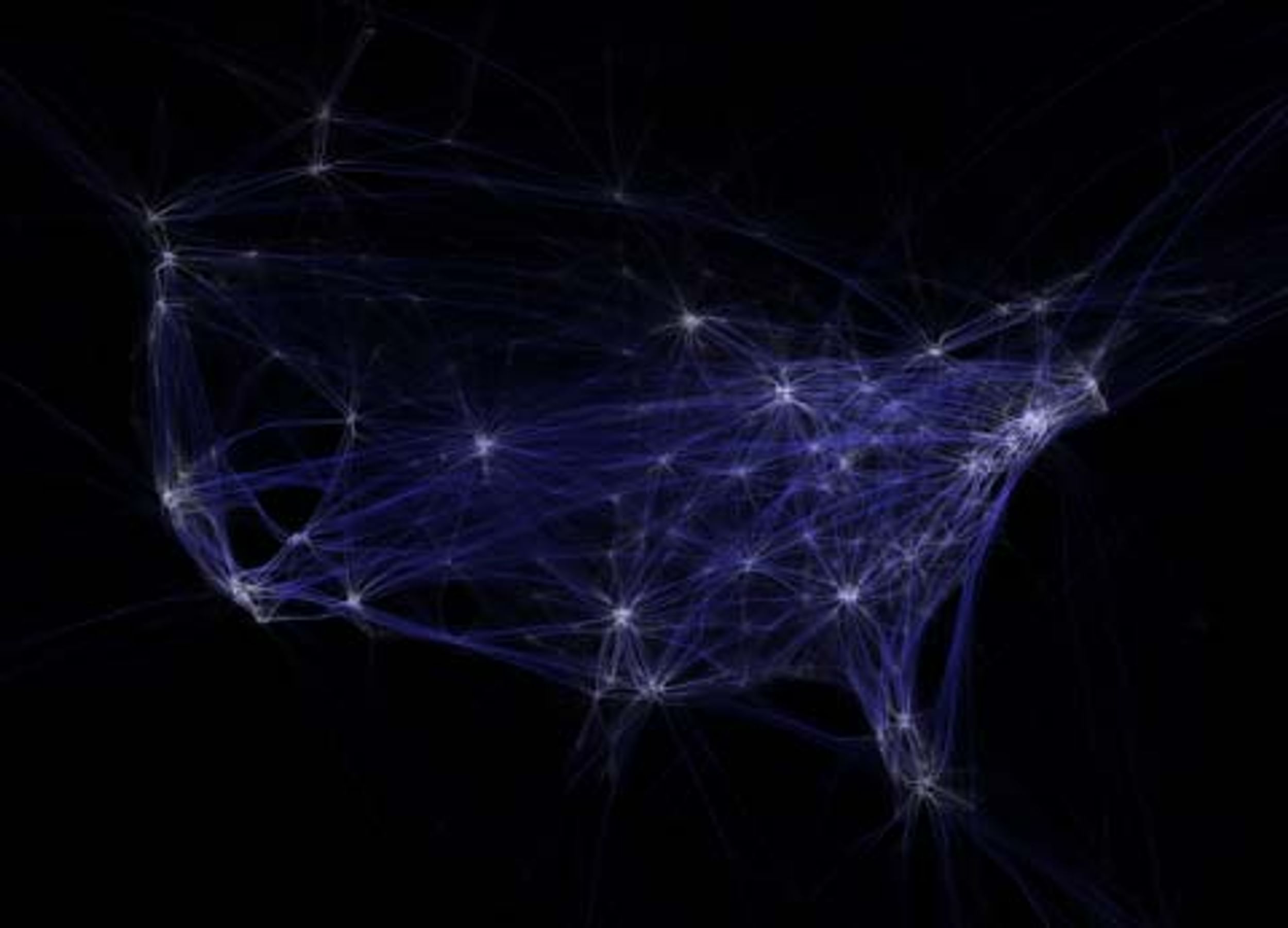 Data artist Aaron Koblin visualized real-time FAA data of flights from different regions around the world, which helped mark a seminal moment in "data as design."