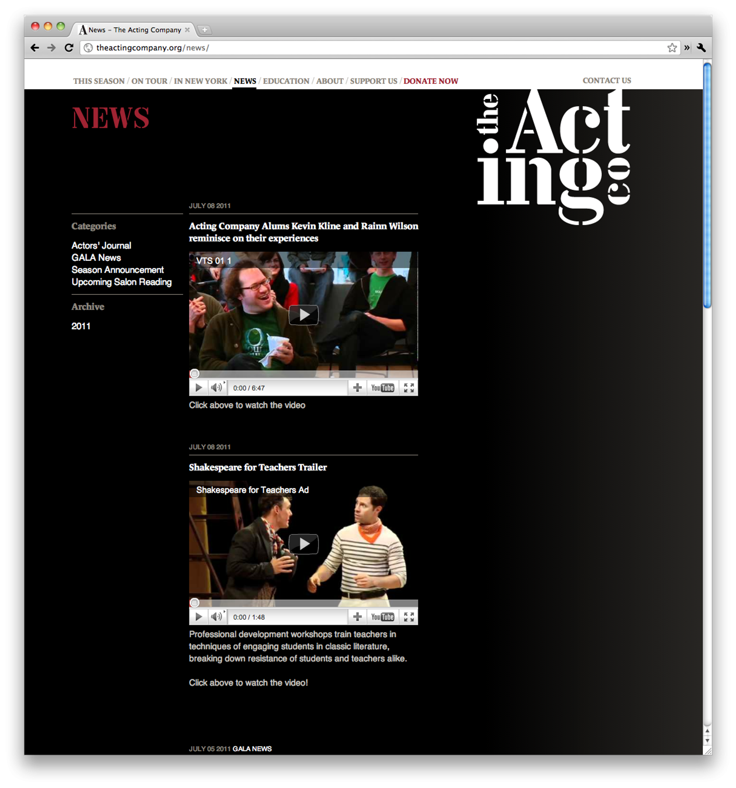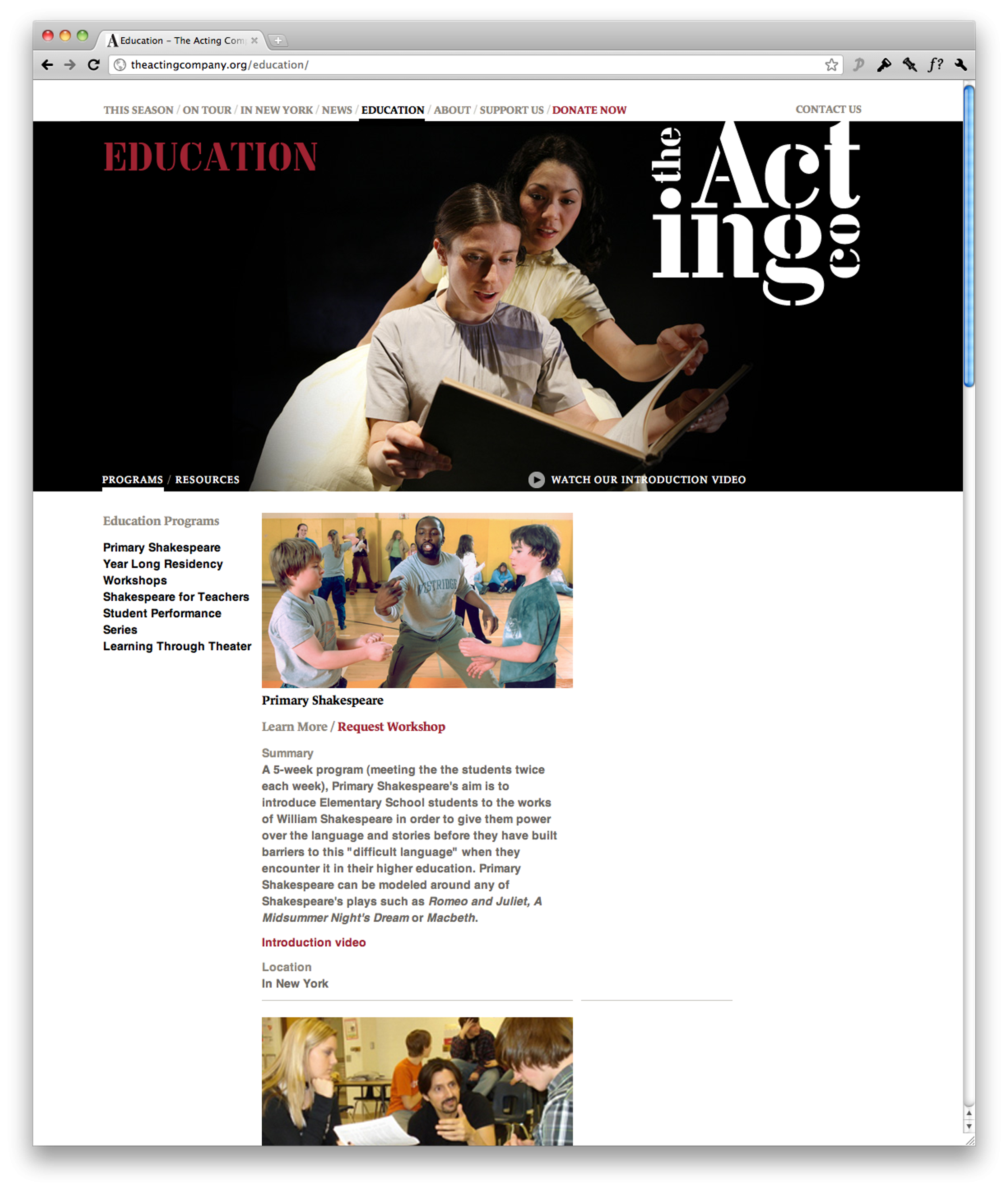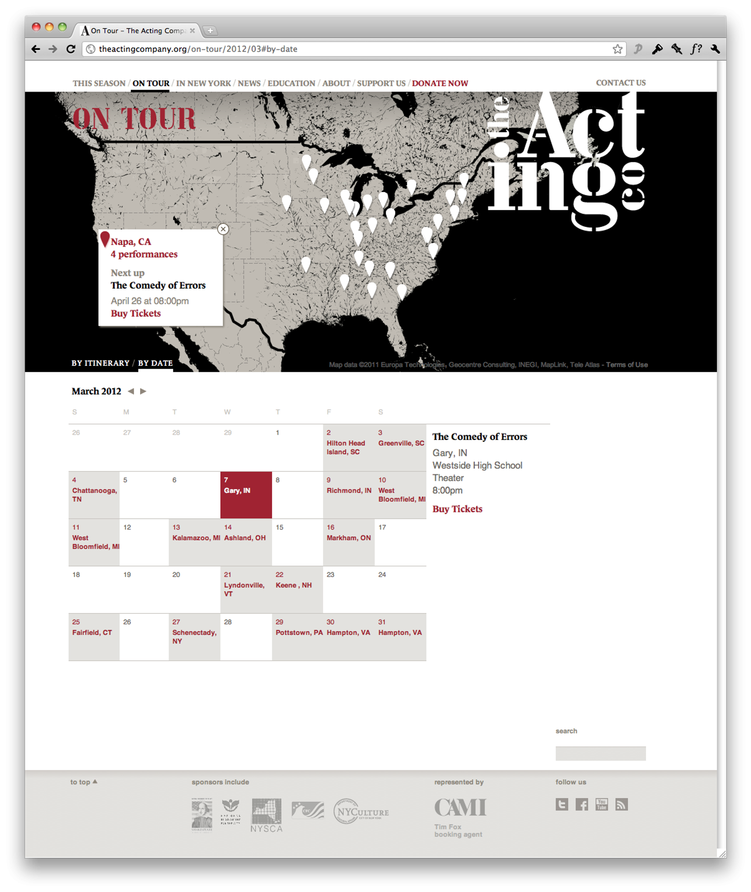 With alumnus including Kevin Kline and Rainn Wilson, The Acting Company is the major touring classical theater in the US, focusing on the works of Shakespeare. Our new identity embraces the visual language of the traveling case: stenciled and strong, helping to express the edgy and spirited attitude of the young cast and talent. The website is organized around their centers of activity: productions, tour dates and locations, and education, which helps patrons find performances all across the country.