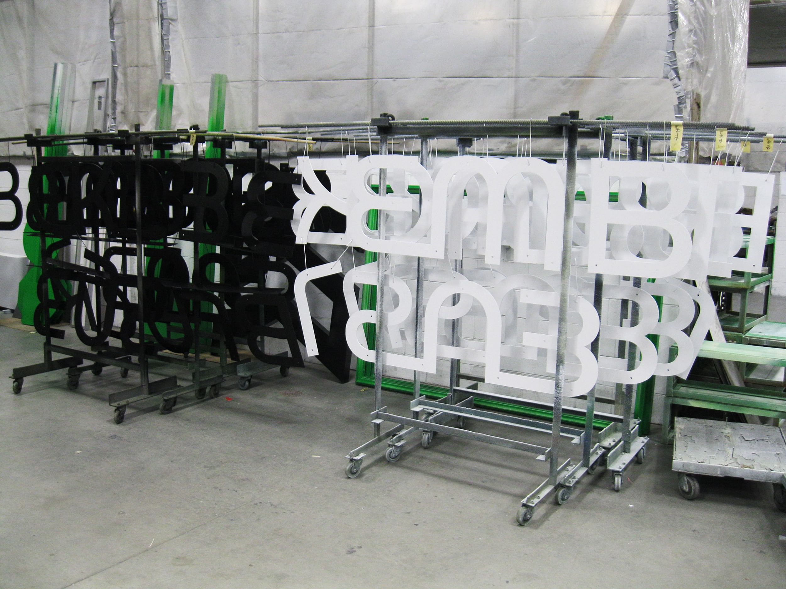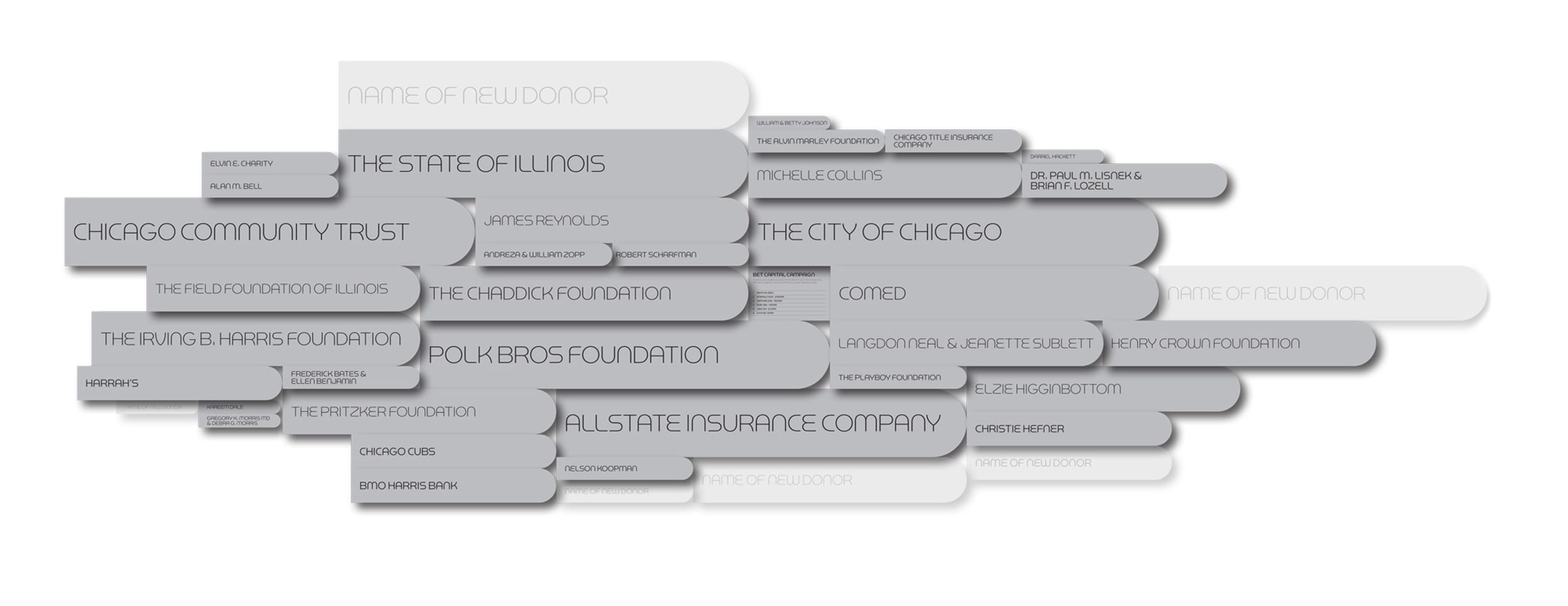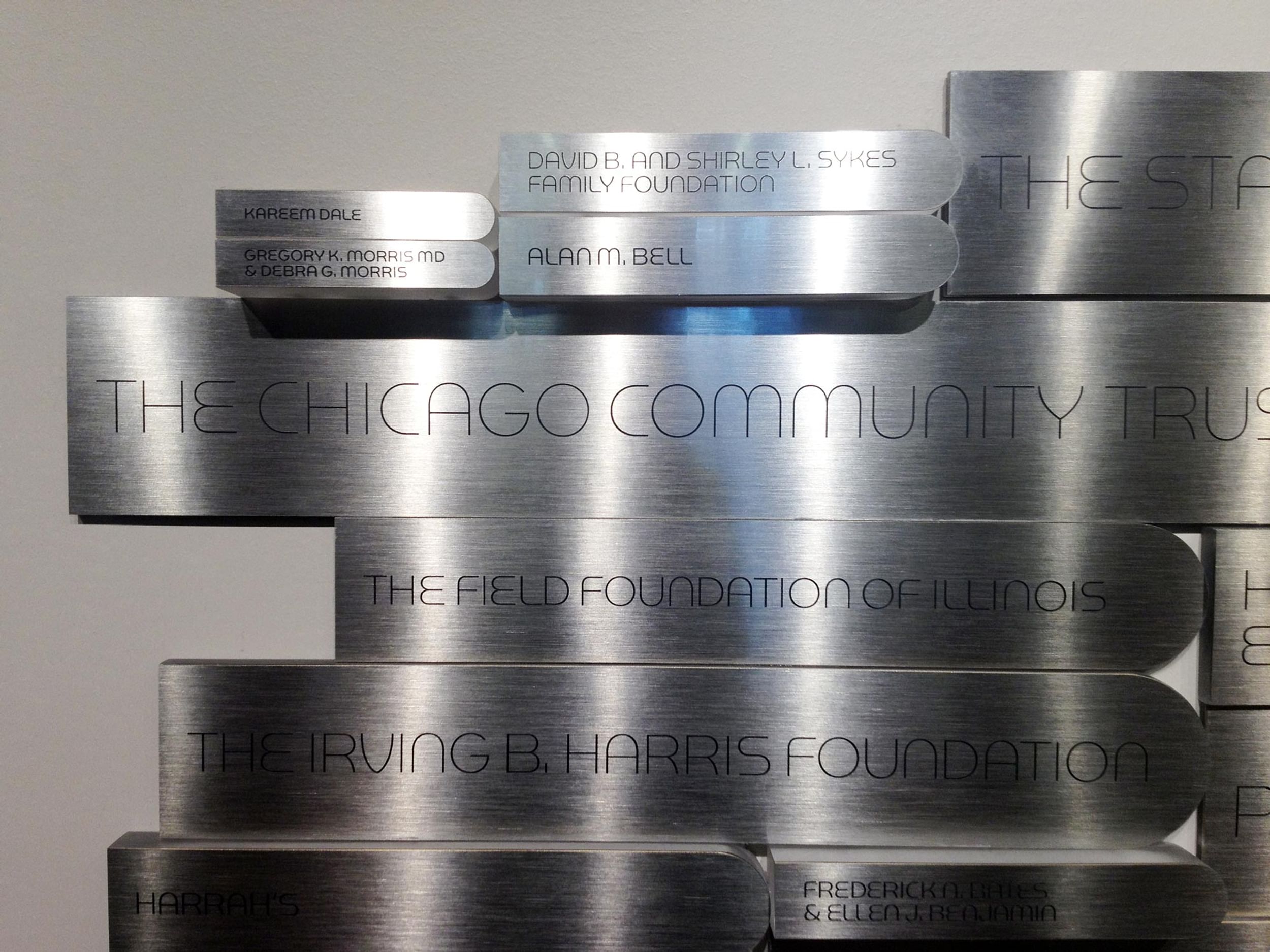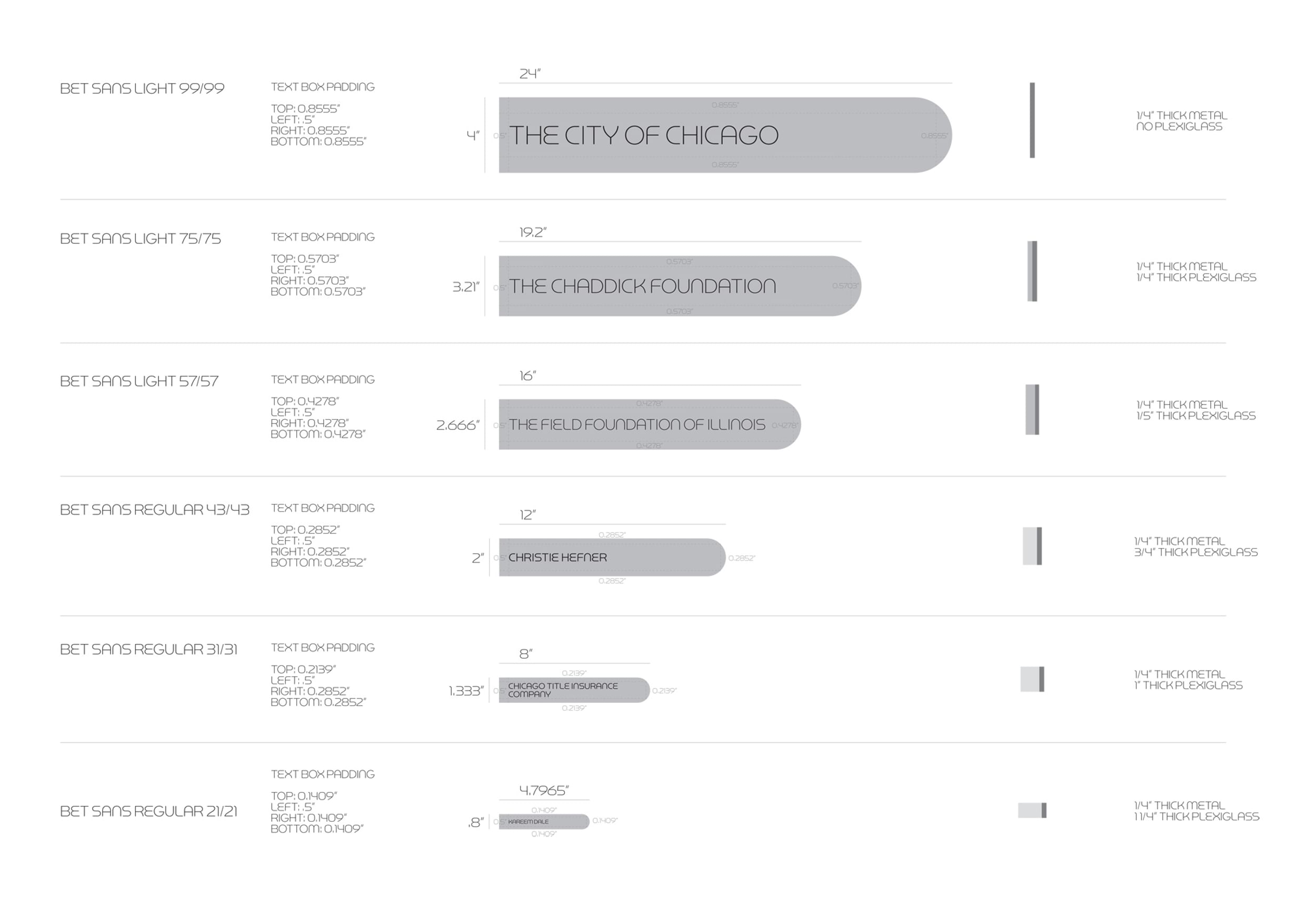 The donor wall for the capital campaign features six custom weights of BE Sans that when typeset in their respective sizes all match in stroke weight. While one person's plaque may be smaller due to their donation level, their name will be just as readable.