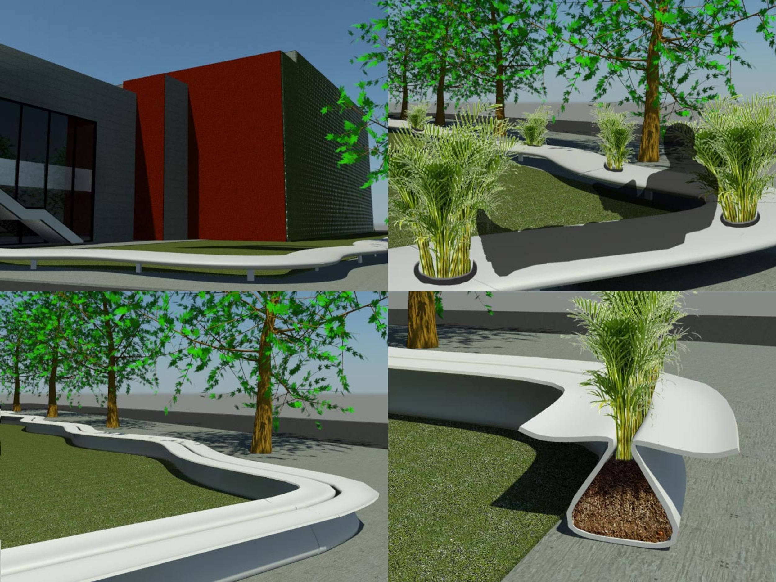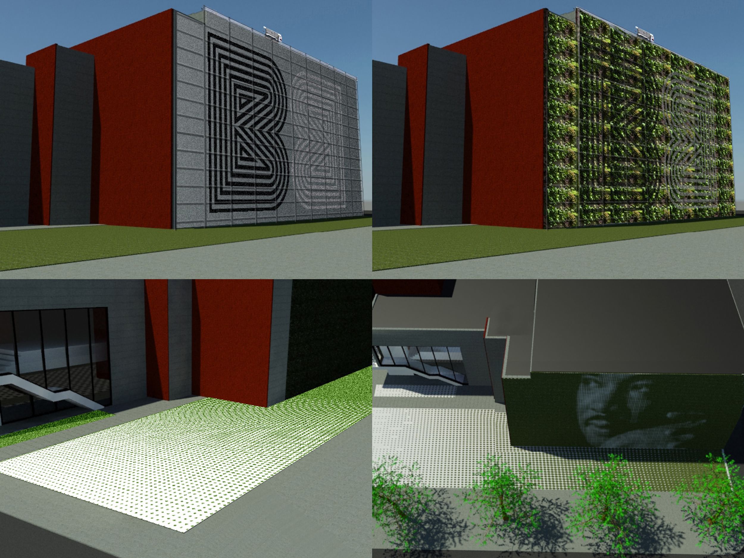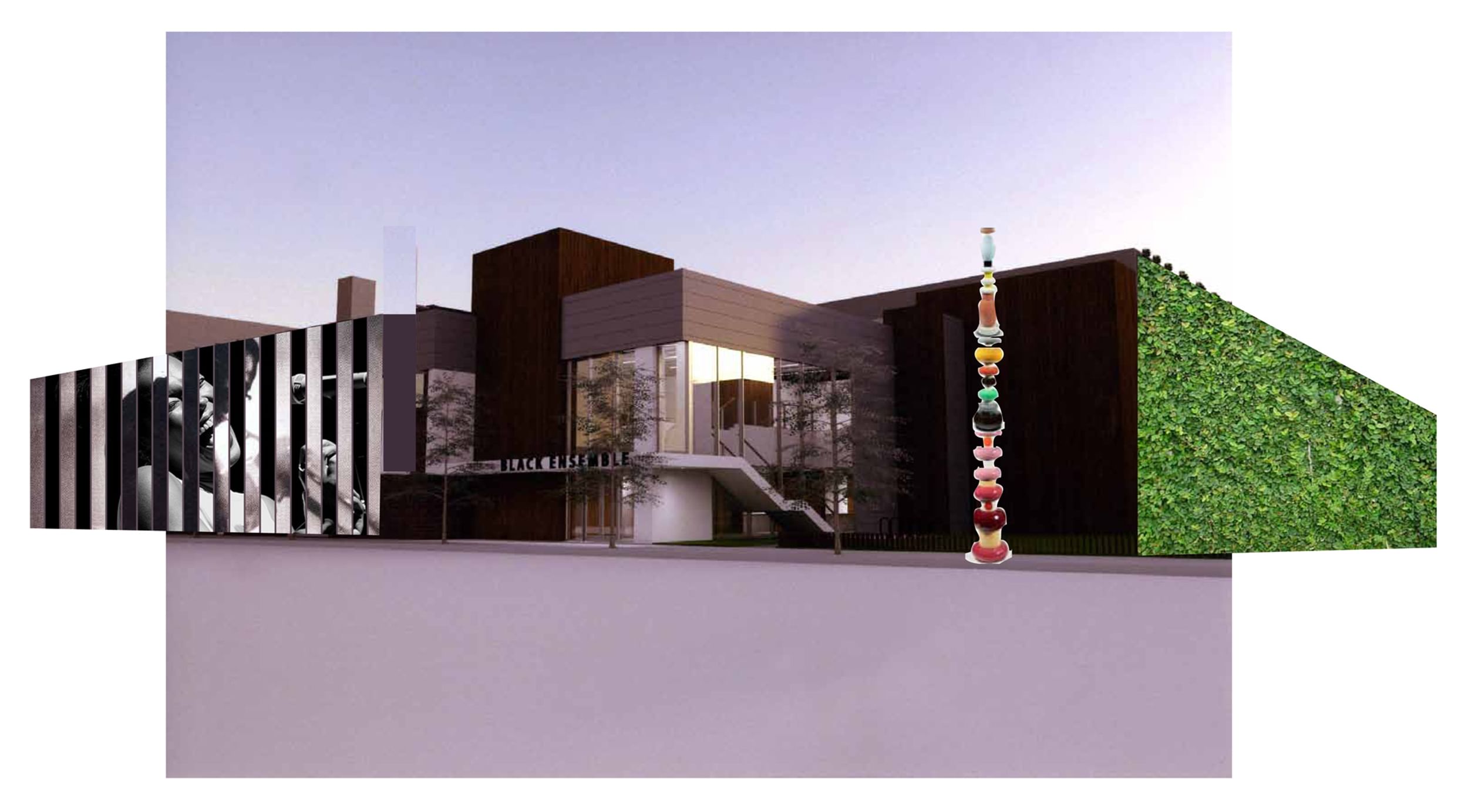 Our exploration for the garden area started with us decorating the exterior of the building with the themes we discovered. We proposed a totem monument to be placed on the street corner that would act both as public art and identifying signage.