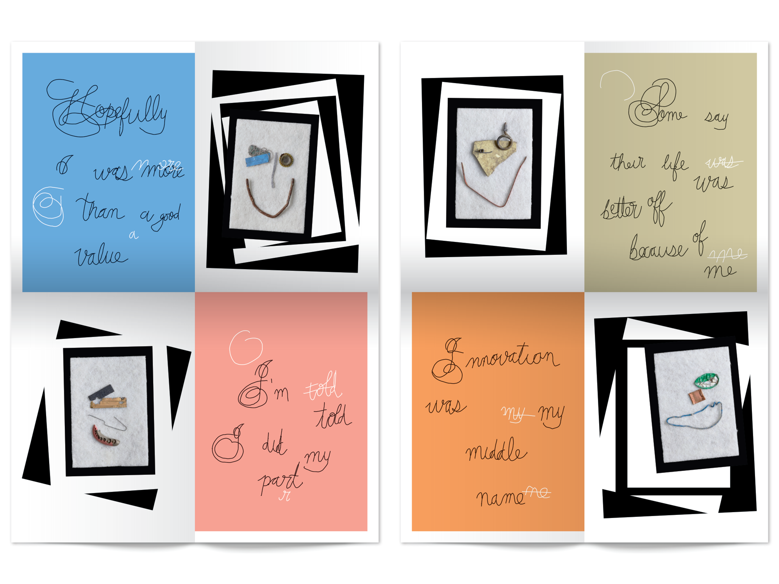 For Typeforce 7, Anna Mort and Rick Valicenti collaborated on an 8-page broadside takeaway and an electroluminescent wire installation that reflect on life… they are as happy as they could expect to be.