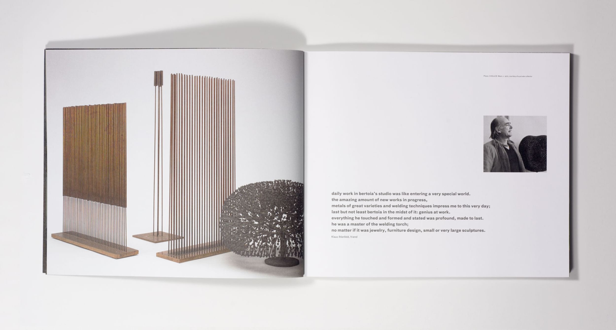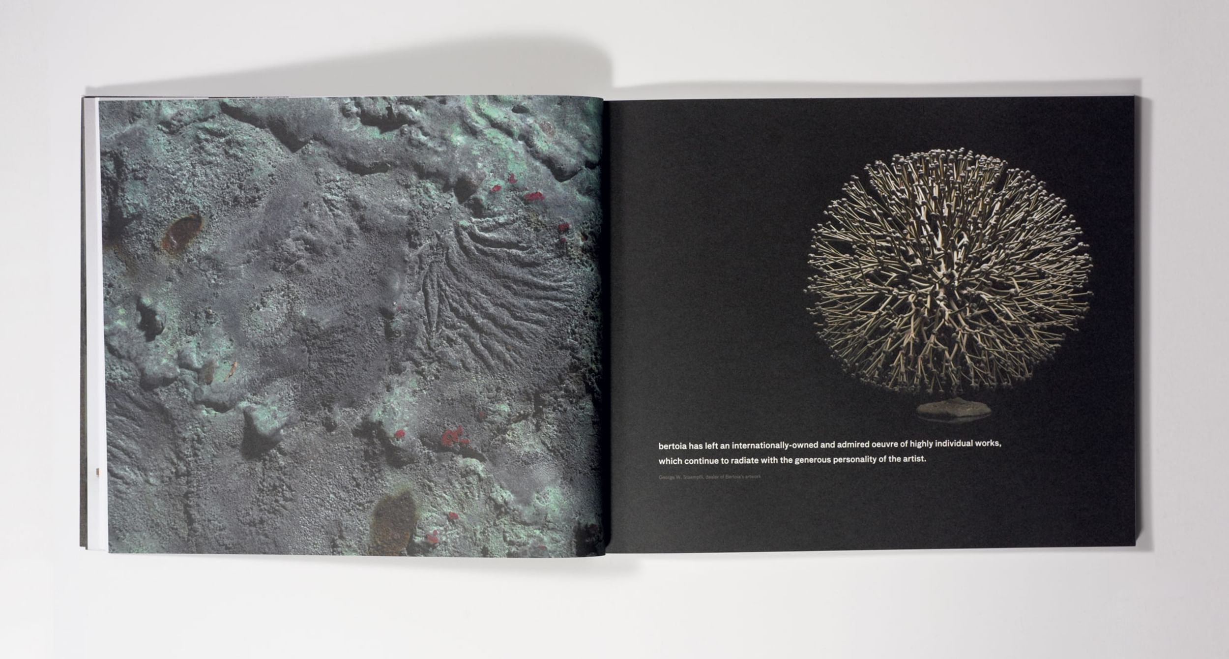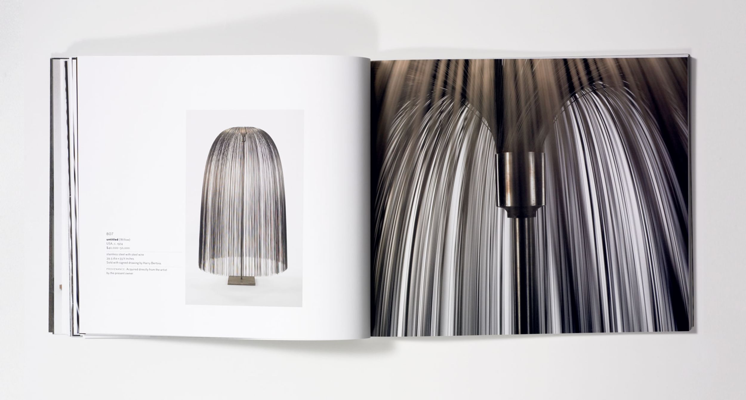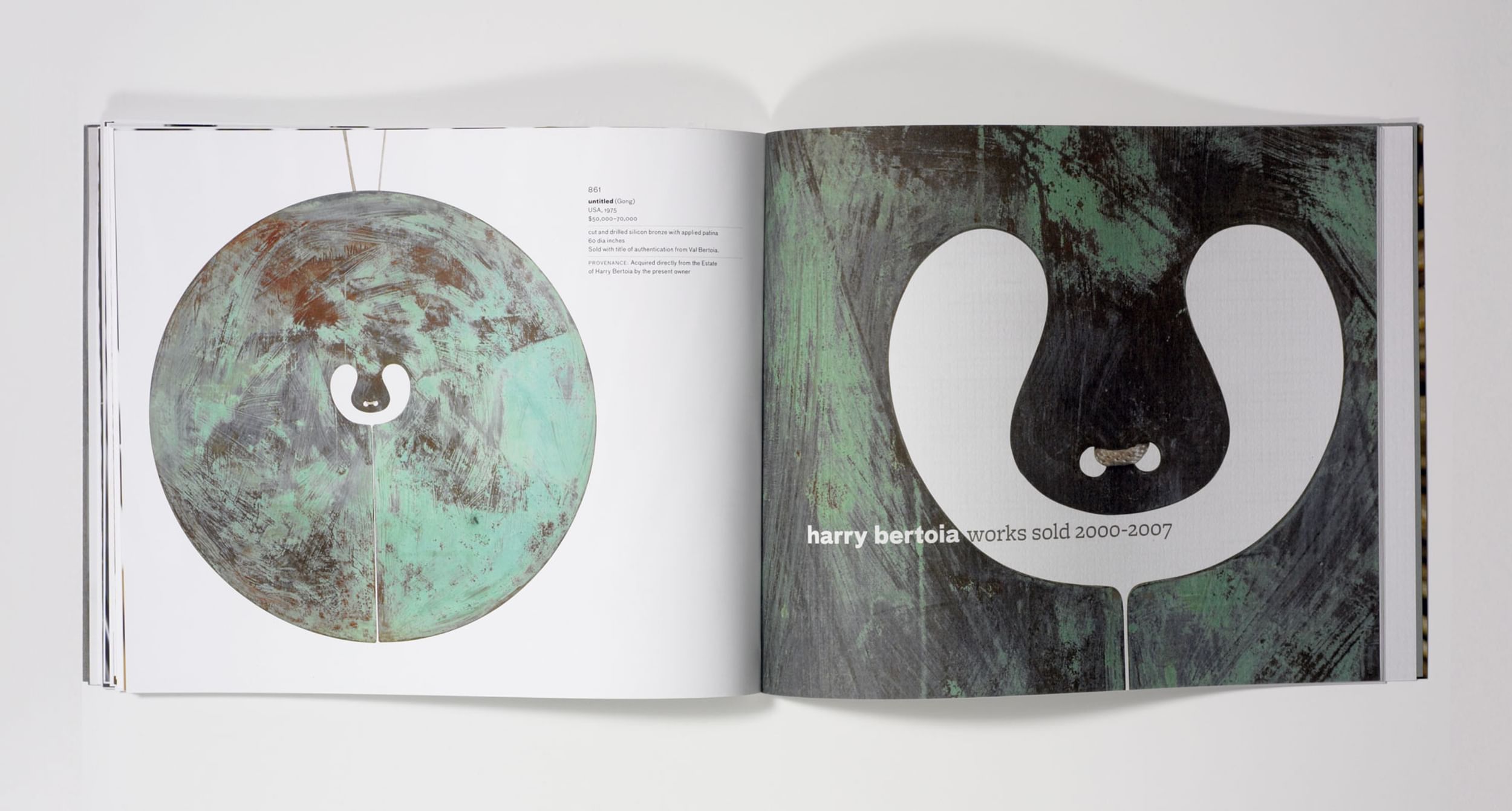 Thirst designed this retrospective catalog of work by sculpter Harry Bertoia. Simple typographic hierarchy, a palette of rich papers, and simply presented photography yield a museum expression of historical context, artistic contribution and Wright's market history.