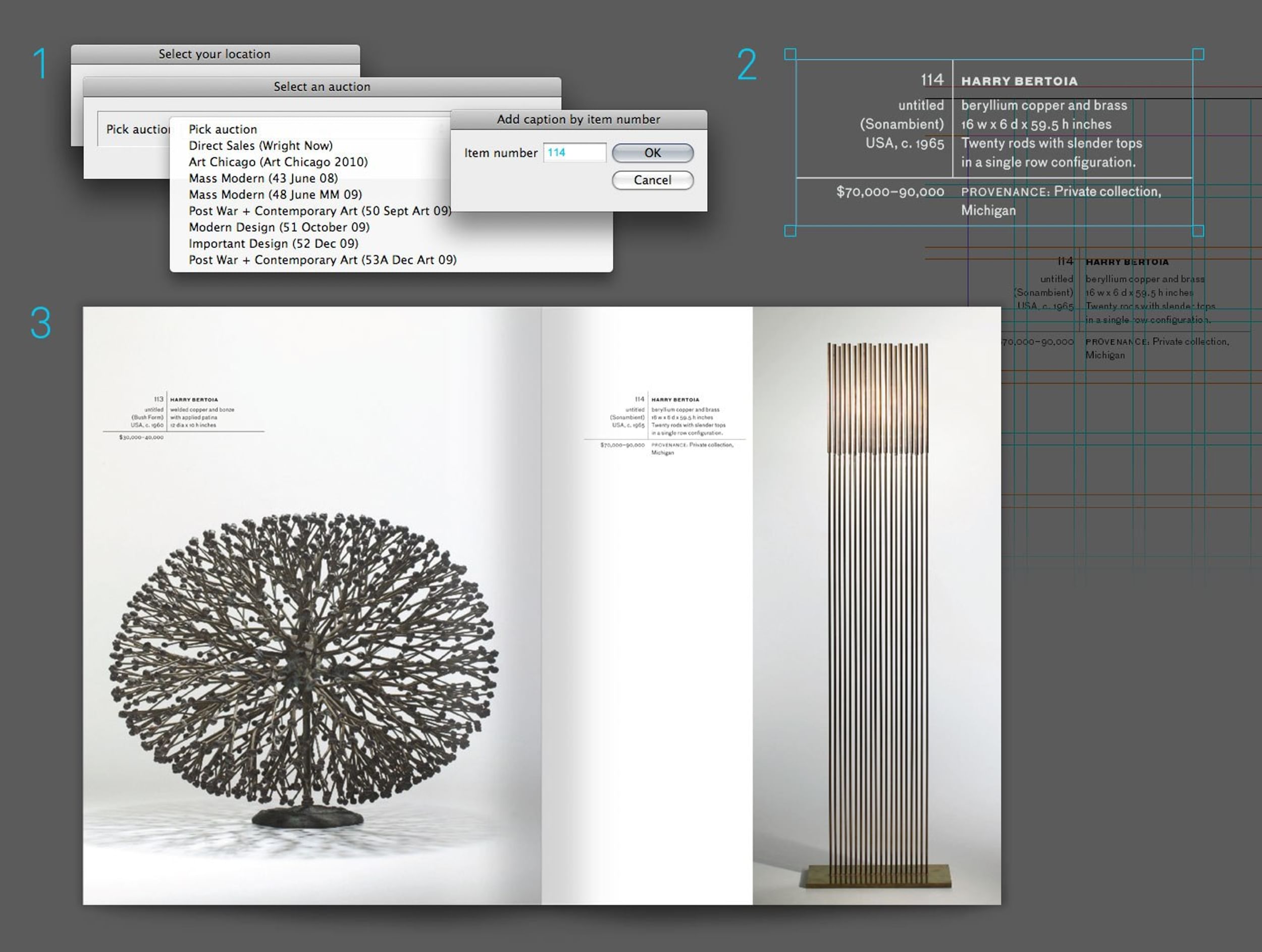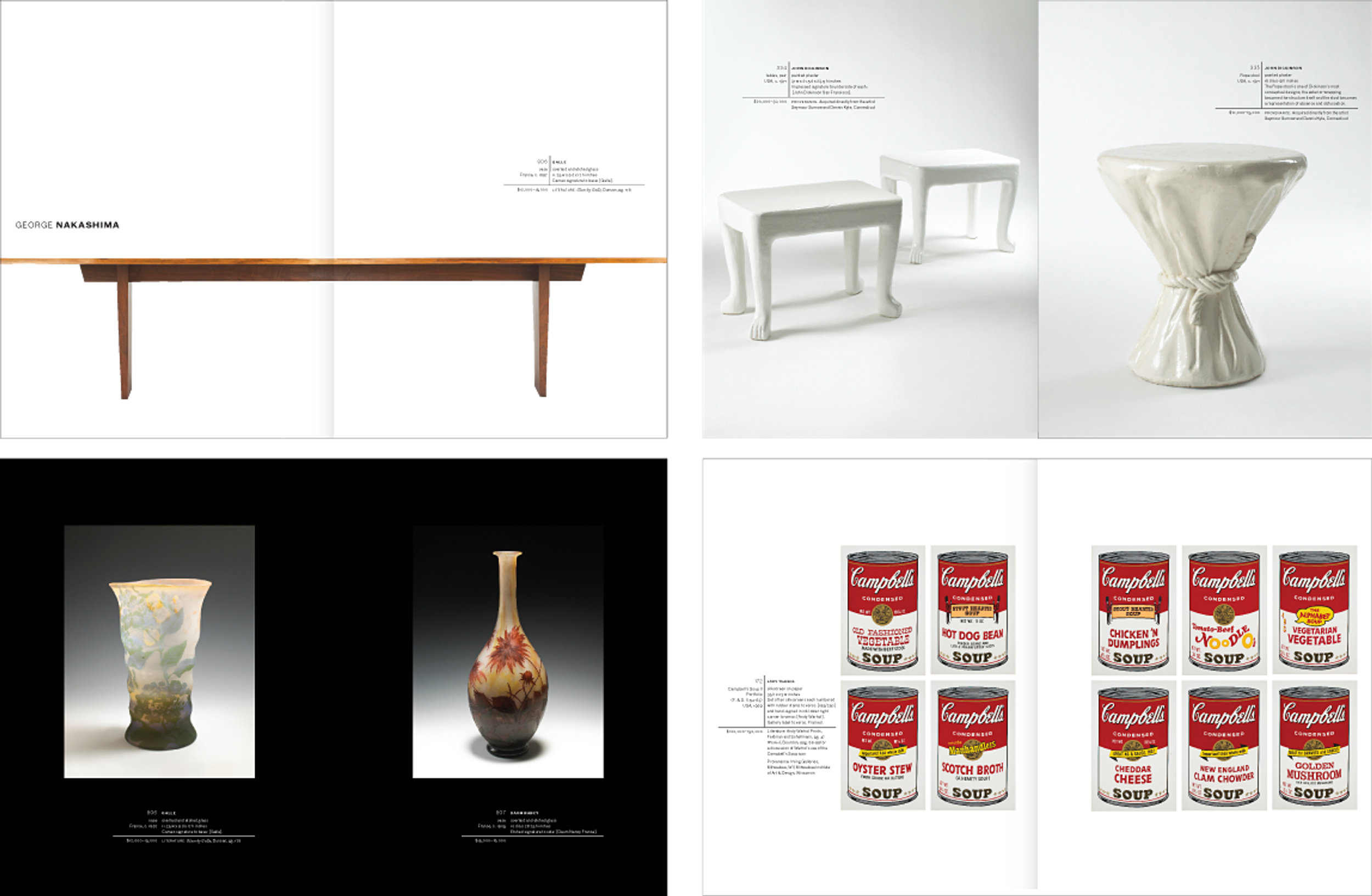 Since Wright was already known for having unique catalogs, we believed Wright needed to position themselves as the collector community's fashion house: treating each auction as a new "line." The catalog became a unique opportunity to make a visual splash, while Wright established a market for artists and designers like Nakashima and Bertoia.